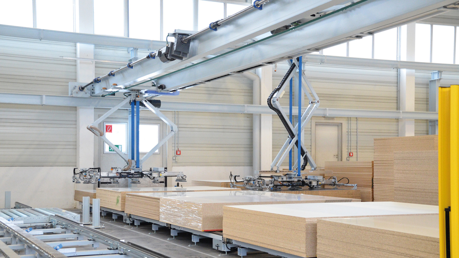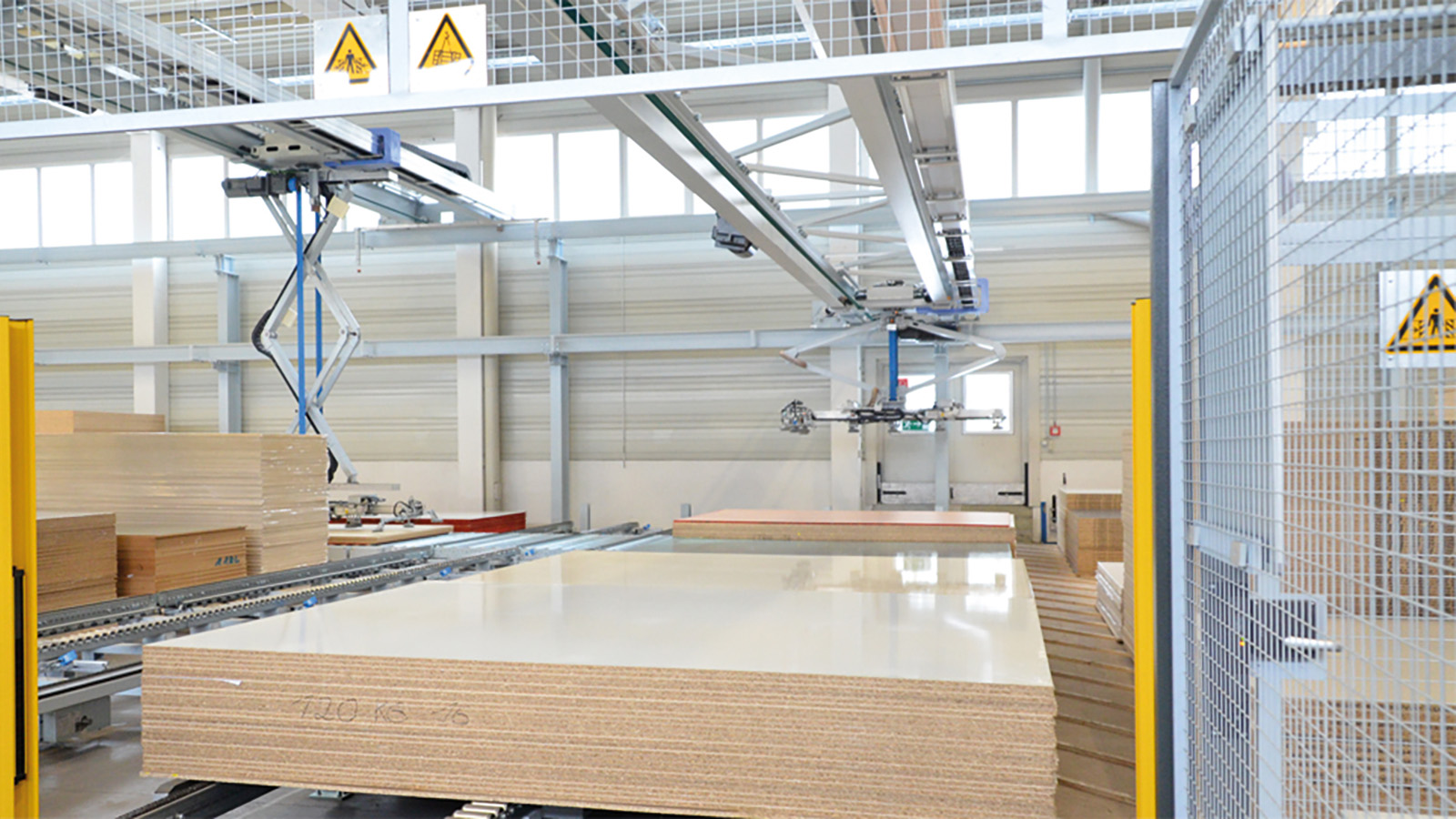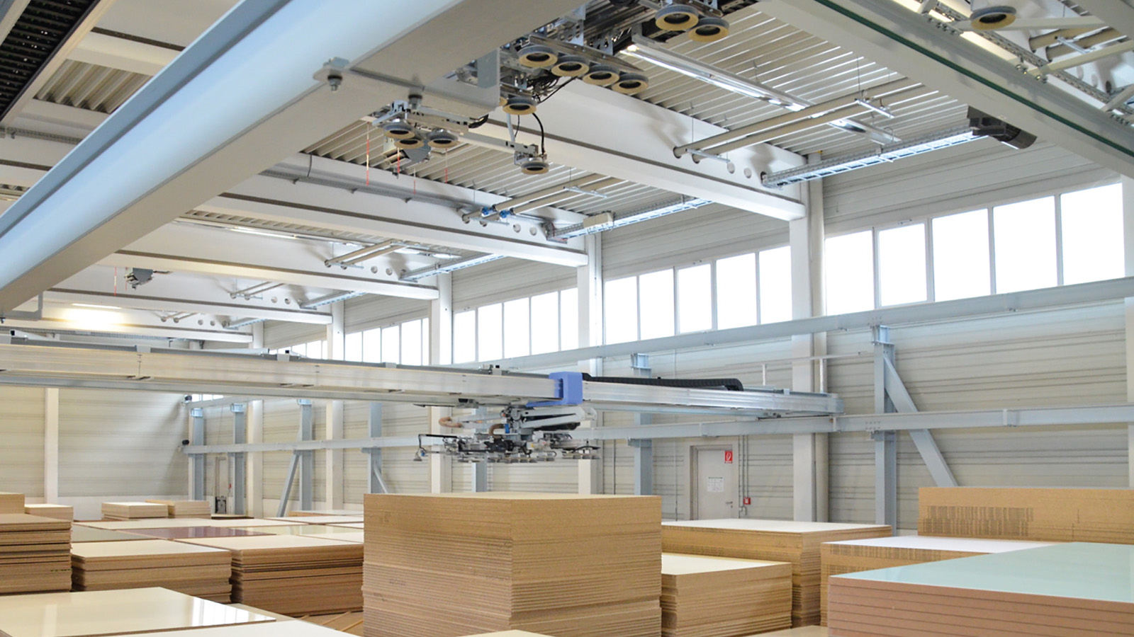 排序仓库对将进入裁切工序的板件进行缓冲和分拣。其能够将各种材料快速、自动化并准确的入库存储、转移出库、排序或输送给下一工序的加工机器。因此该设备为工业化生产创造了足够的空间。