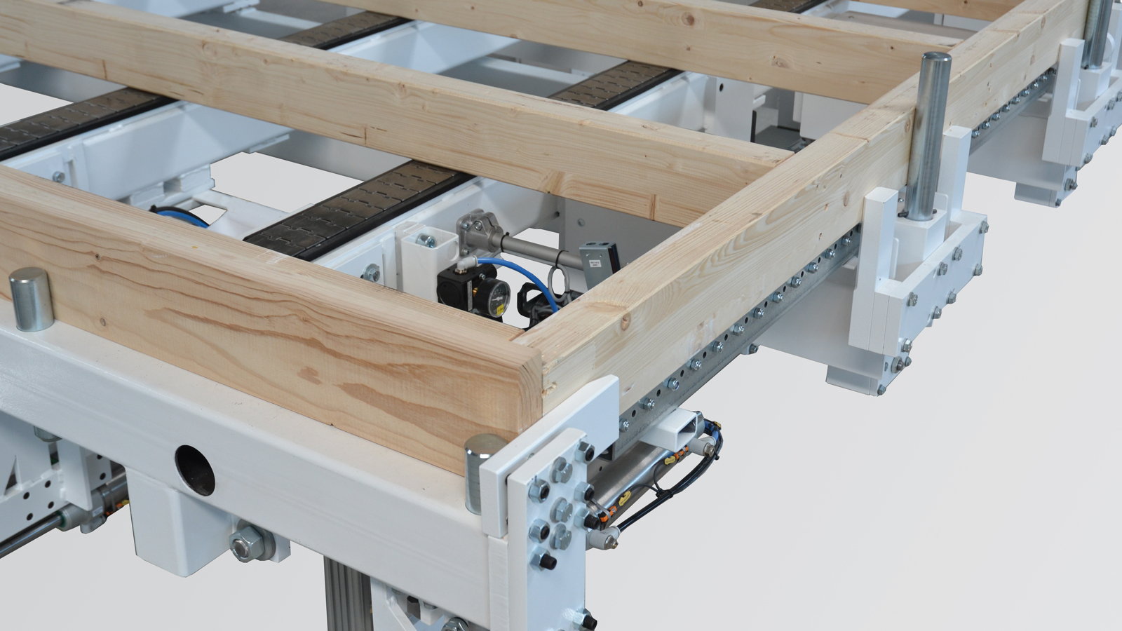 BUILDTEQ A-500墙体组装台用于生产线的运输、夹紧、对准,以及元件的放置和翻转。