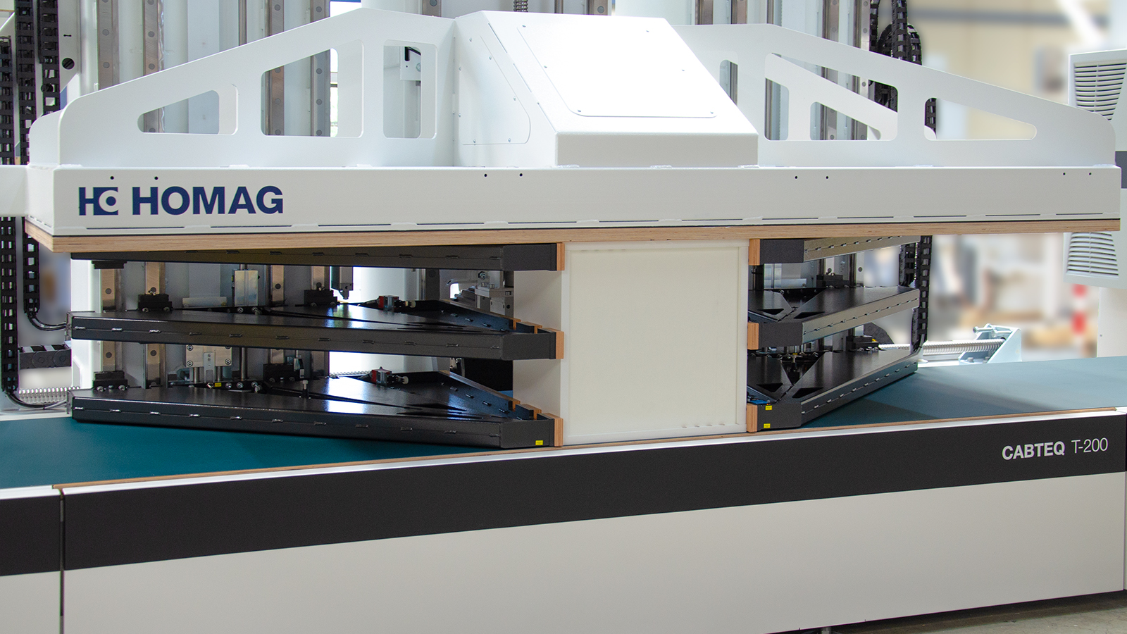 无论是敏感或薄壁、特别昂贵的家具,还是斜角接合的家具——电气化连续压机 CABTEQ T-200 都能自动以最高质量无损压制每个骨架。结果是绝对直角、稳定、干净利索压制而成的柜体。