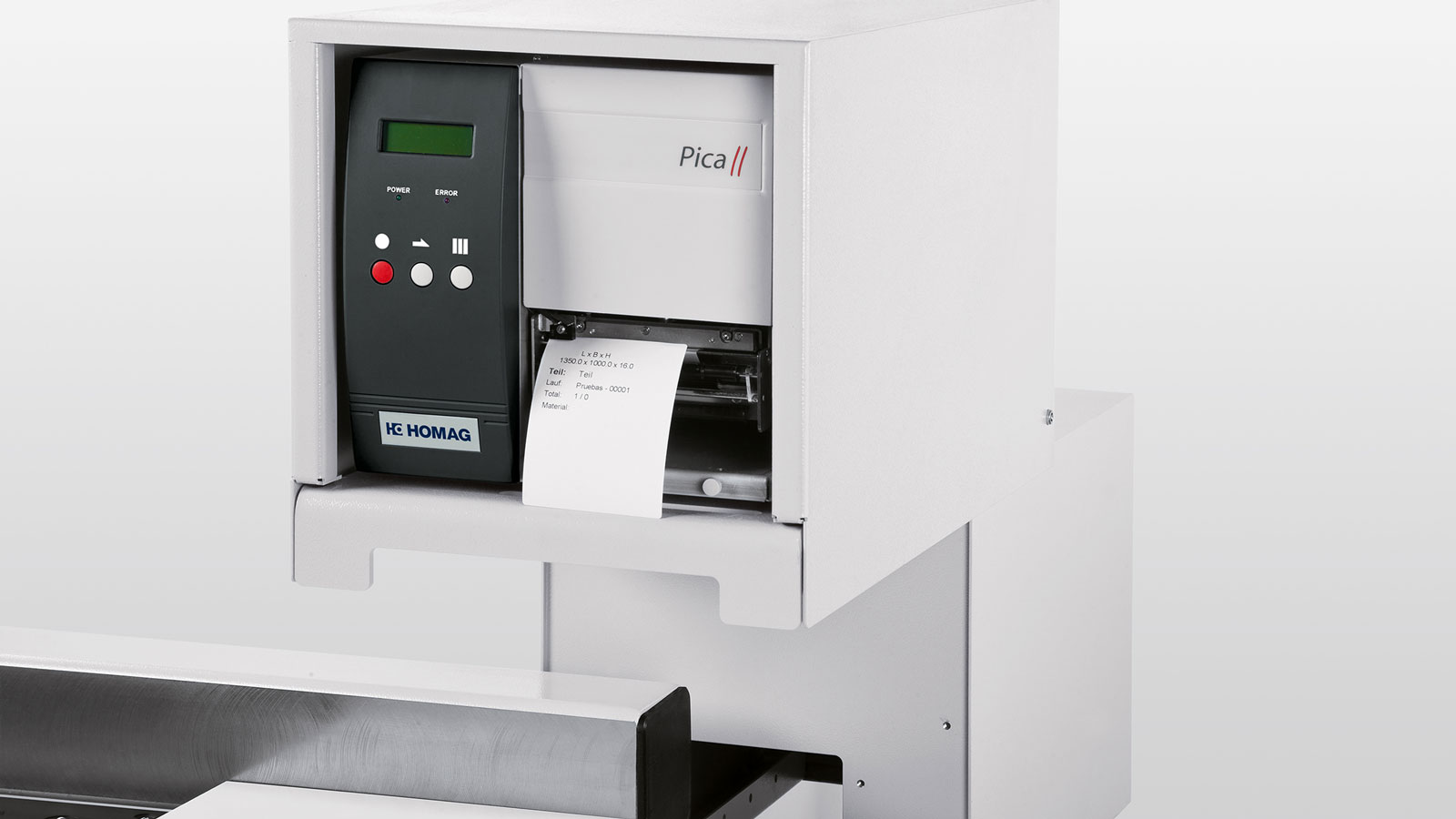 第 1 个气垫工作台(选项)上的启动/停止杆可用于便捷启动程序,即使是在处理大型板材或板条时