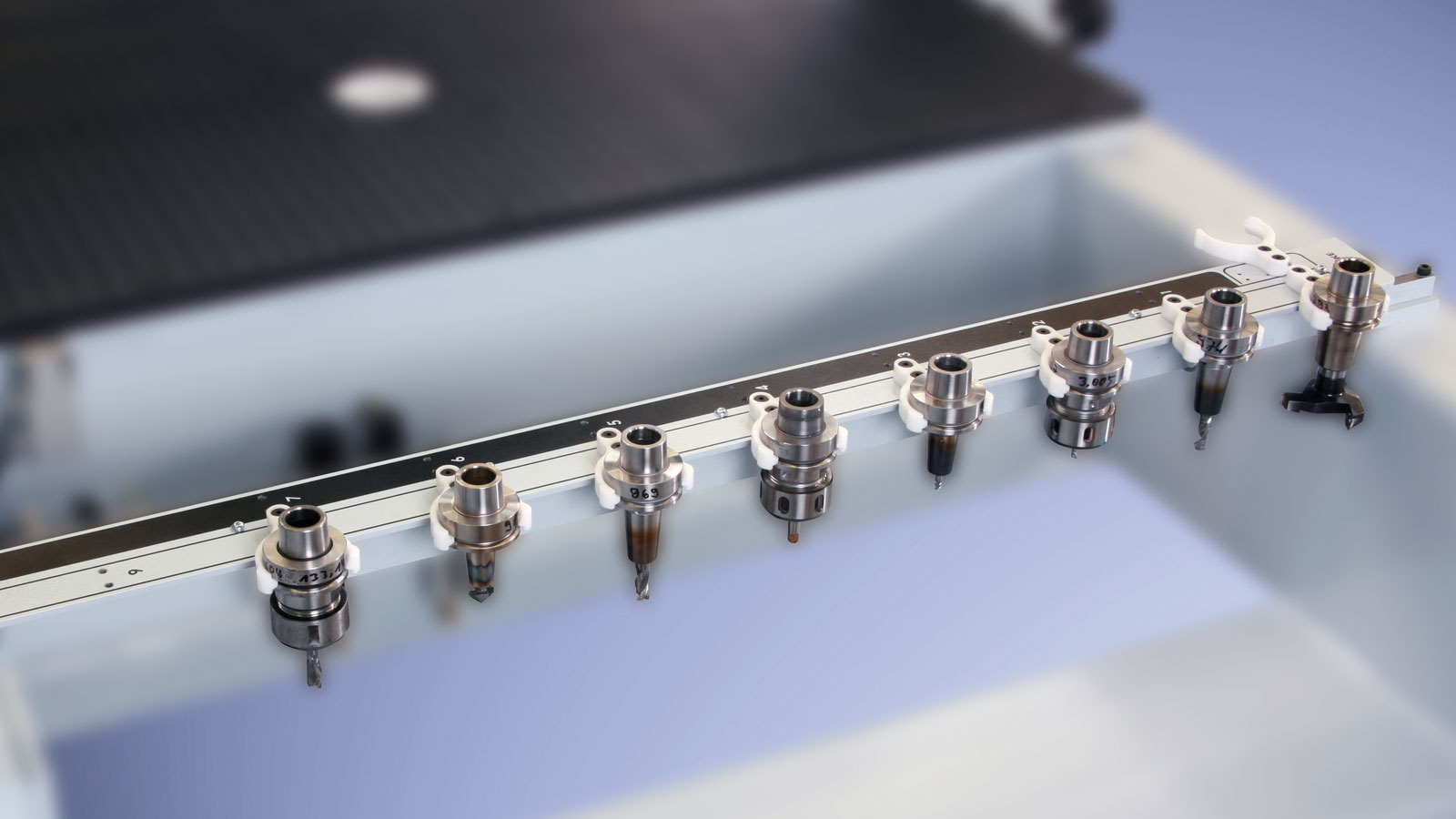 根据工作区域的大小,换刀系统配有 7 到 12 个位置