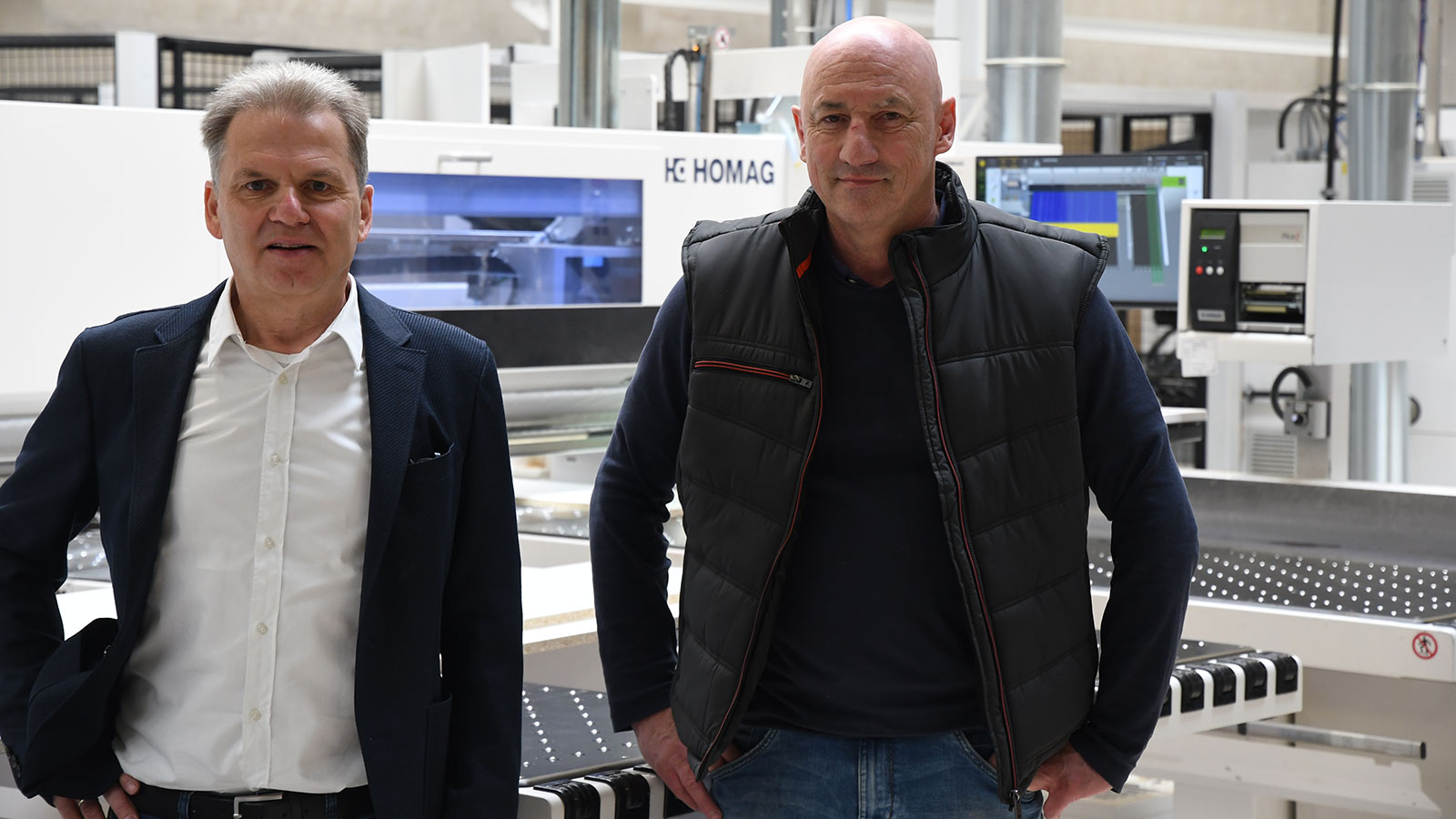 “最近我们投资了很多设备”,Breitschopf 总经理解释道。“有了这样的储备,我们希望在未来几年持续提高销售额。我们的机床拥有足够的功能冗余。”当然,实现这一目标的路线和要求都不会改变:“生产必须协调。每天的生产量必须按时完成,这样才能保证六天的生产周期”,Hoffmann 再次强调。为了获得更多保障,橱柜制造商还与 HOMAG 签订了服务合同。“我们还可以使用远程维护”,生产经理补充道。“最后,如果一台机床发生故障,那么另一台就会立刻顶上。因此无论发生什么,生产都会继续。”