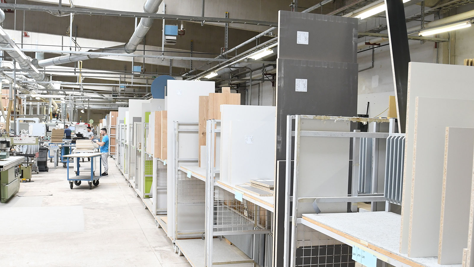 经过铣削、锯切、钻孔和打榫的组件通过一个道岔分别进入两条轨道:一部分前往组装车间,在那里用主体压力机等进行组装;另一部分前往各个手工工位,以执行无法用机床完成的加工。“这里的所有东西也像是在辊道上那样前进,并且按照顺序进行加工”,Hoffmann 表示。橱柜完工后,它们就上路了 — 用公司自己的卡车直接运送到客户那里。“奥地利南部则由货运代理负责送货;然后由我们的当地装配团队负责客户现场的橱柜装配。”