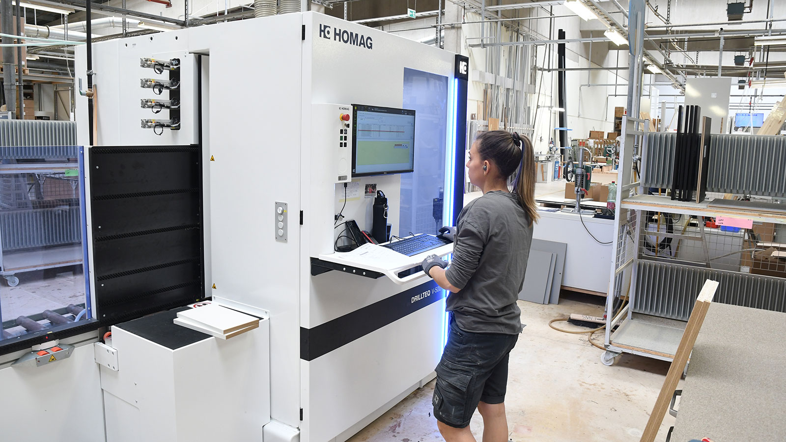 生产的控制中心,或者换句话说:它的大脑,是 Schuler Consulting 公司的 ERP 和 PPC 软件“MCS”,Breitschopf 多年来一直使用该软件工作。“MCS 也是我们选择 HOMAG 的一个重要原因:为了实现顺利的接口对接。数据从 ERP 和 PPS 软件传输到“woodWOP”,后者负责 WOP 编程,并作为 CAM 系统控制机床。“例如,V-500 和 H-600 的钻孔程序也可以直接在机床上运行。没有任何问题”,生产经理说道。