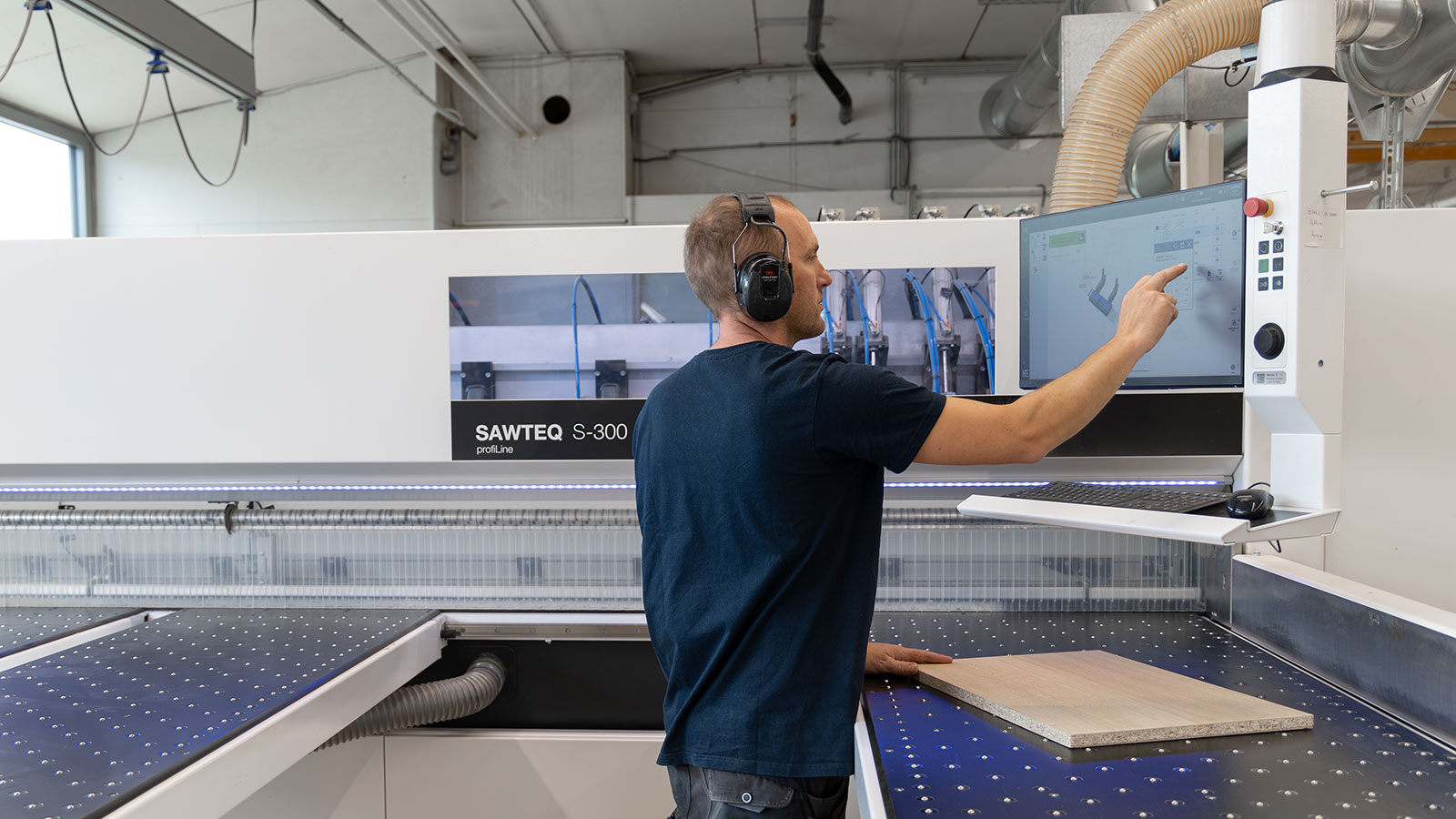 Artur Summ 投入使用的 SAWTEQ S-300 几乎配备了所有由 HOMAG 研发部精心开发的最新功能:超宽气垫工作台、具有更高材料吞吐量的 Power Concept、ecoPlus 技术、intelliGuide 提供的直观操作等等。“这可谓是面面俱到。”作为这家于 1929 年成立、历史悠久的木工厂的运营负责人,Fabian Ziegler 对这些优势深有体会。如果可以对创新深化程度进行从 1 到 10 的打分,他会毫不犹豫地为 HOMAG 打上最高分。