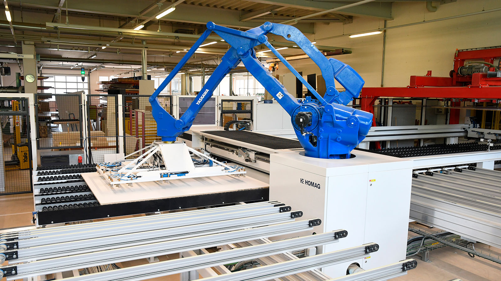 Alpnach Schränke AG 是瑞士领先的储物家具制造商之一。公司最近开始专注于生产批量为 1 的产品。公司两年前开始使用 Homag 的 SAWTEQ B-320 flexTec(现为 S-320 flexTec)机器人裁板锯进行切割,同时与封边机相结合。