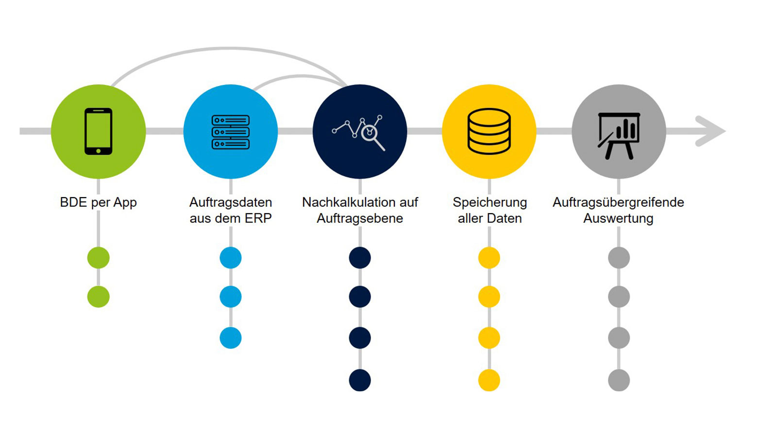 虽然通过智能手机或平板电脑获取数据为数字化带来了不依赖于固定位置、可移动操作的明显优势。然而,更大的优势则是较低的实施成本和硬件成本。客户几乎不再需要硬件成本因为他们使用二手智能手机。数据传输也是通过公司的有线网络进行,SIM卡也变得无关紧要。尽管使用的平台是根据新的DSGVO(GDPR)规则设计,但是将公司数据存储在云端通常是一件棘手的事情。存储的数据不会包括客户任何具体的、敏感的信息。只有在进一步的处理过程中整合ERP系统中的数据,才能显示出敏感的客户信息。无论如何,这个过程不会在云端进行,只会发生在企业内部。