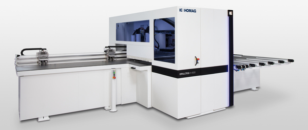 内置旋转龙门架的回送装置能实现高效率的物料流。自动分离完成加工的工件:没有任意形状加工的所有直角裁片首先退回到分拣缓冲区,尔后自动连续输送到加工中心DRILLTEQ H-600 (BHX 560)继续进行钻孔和铣削加工。在封边条的出口处将具有任意形状加工的裁片码垛,并且利用机器人搬运系统将其供应给 CNC 单元进行继续加工。