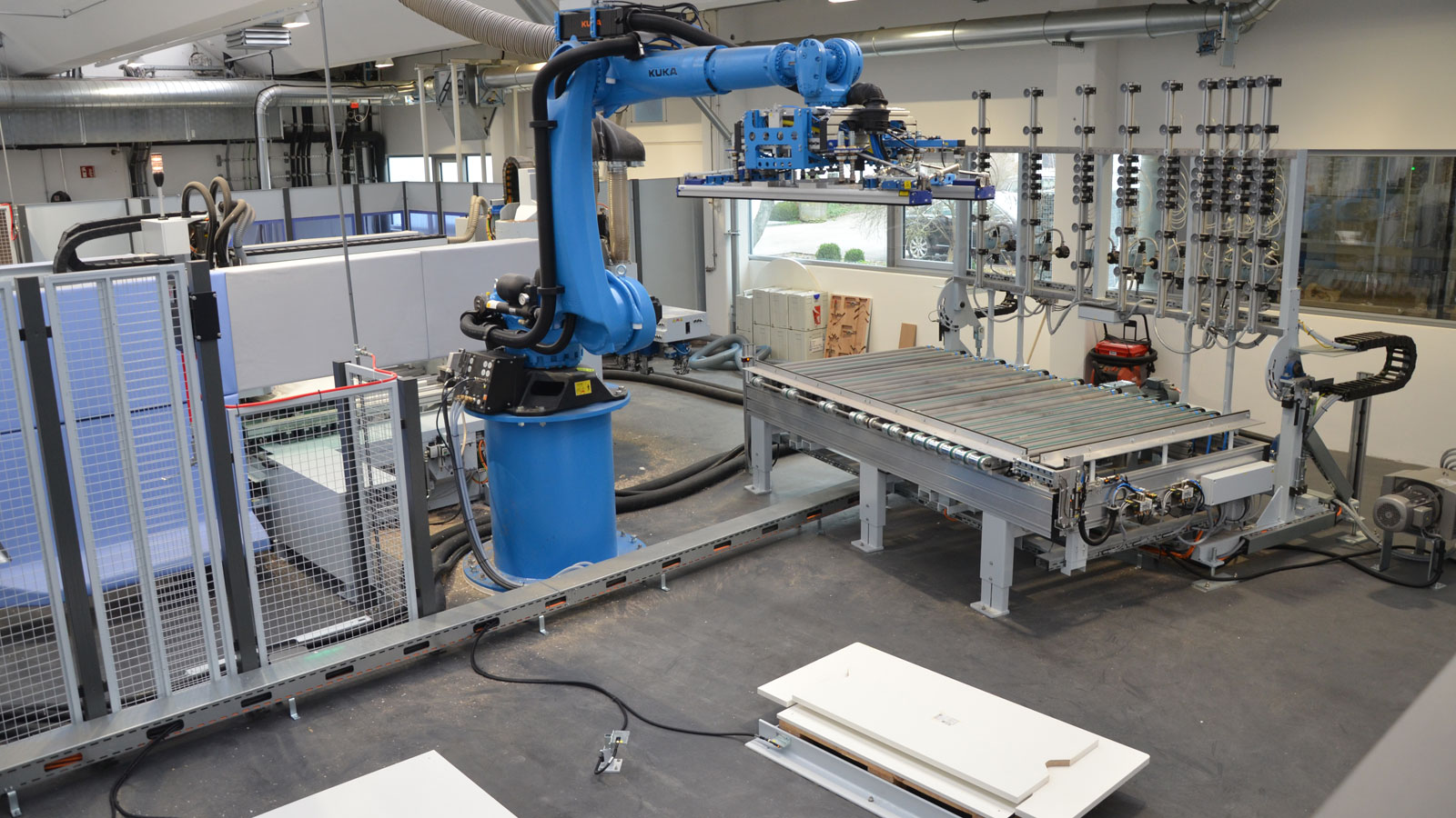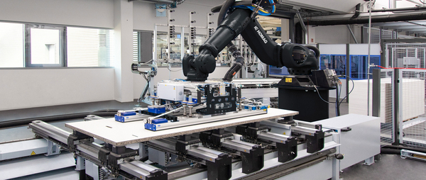 Erfi 生产设备的每一位参观者均可看到机器人,这是自动化生产的外在标志。自动化在很早以前就已开始 — 即一旦在生产准备阶段将订单相关的数据与 CAD/CAM 系统和物料清单管理系统中的数据合并,就会开始自动化工作。通过 HOMAG 的生产控制系统ControllerMES最终产生每个裁片的 CNC 程序和生产数据,然后提前将其交给机器。在这里给每个裁片“注入生命”,也就是加上直至最终装配都有效的唯一识别号。“HOMAG 的生产控制系统 ControllerMES 为我们提供了一种以最佳效果组织生产流程、并且使得机器和手动工位完美配合的平台。”Erfi 的 IT 系统管理专家 Peter Bitzer 解释这些新技术方法时如此说道。