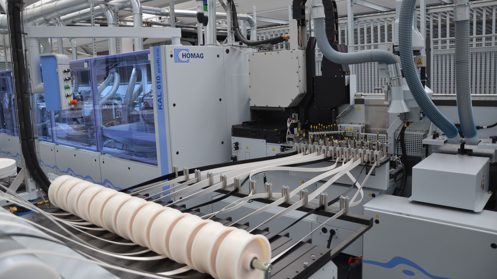 利用高度灵活的封边单元进行封边,该封边单元可利用laserTec – Next Generation以单件批量实现无接缝质量。这种灵活生产的设备使用单面封边机EDGETEQ S-810 (K 610)。以按序通过的方式进行多面加工,即使按拣选方式以不断变化的尺寸进行生产,也能实现很高的产能。在最短的间隙之内在两个工件之间改装加工单元是最新技术。利用工件进料系统在纵向和横向以准确尺寸和角度送入工件。与 Power 拼缝修边单元相结合,配备用于高精度、无爆口加工工件的液压刀具,就能连续进行精确的开料加工。封边单元可以加工十二种不同的封边条,自动切换,无需人工干预。采用新型二极管技术的激光加工单元经过性能优化,结构简单,非常牢固耐用,并且比以前的激光加工单元更加节省空间。该机器还可以用 PU 进行封边,以便满足特别的耐热和耐湿要求。