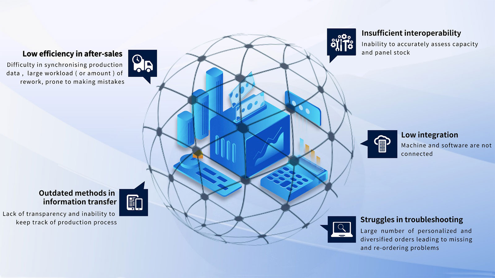 The Factory Management System is a customizable solution that resolves production challenges through scientific data and achieves personalized digital transformation for companies.