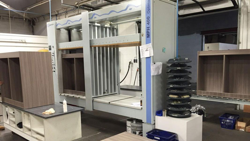 The planning of work stations was also an important part of the first project phase. At the time, Nexis 3 had a large order backlog and had to change something in assembly to be able to complete all orders on time. Assembly definitely represented a bottleneck at the time. Steve's first idea was to invest in a new carcass press, but the old one was nowhere near to being used to capacity when considering pure pressing time. So first of all, the assembly environment had to be improved, e.g. in terms of material supply and working efficiency.