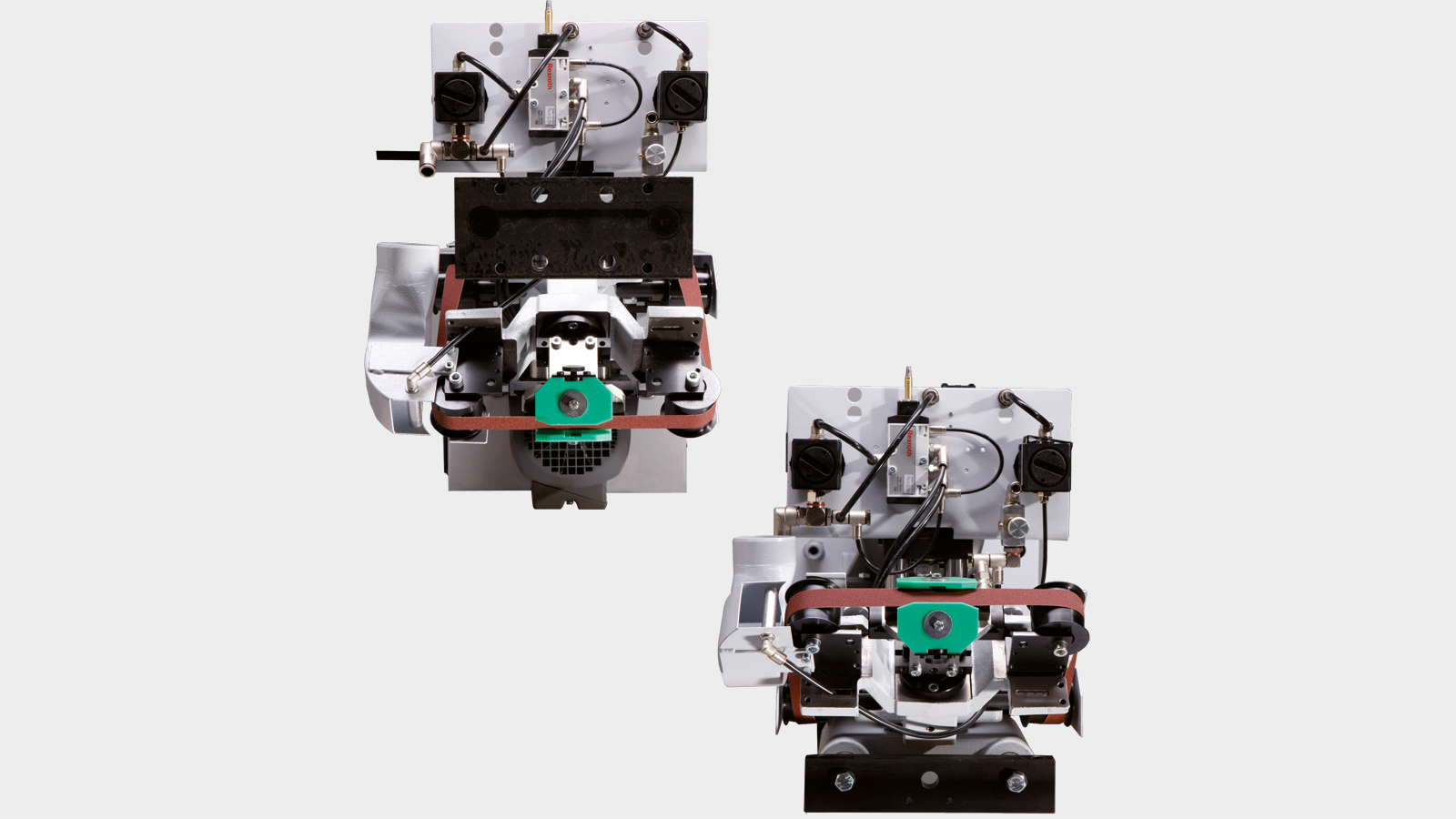 PS20 belt sanding unit with a belt length of 3200 mm and the option to sand special profiles using two separate, individually adjustable sanding pads (dual sanding pad Technology)