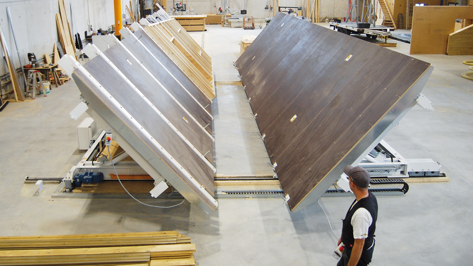 The WEINMANN butterfly turning table offers the ideal solution for turning your elements, allowing you to process both sides. Once the first side has been processed, the element is transferred to the second assembly table where it is completed.