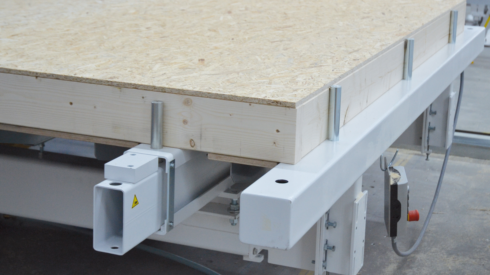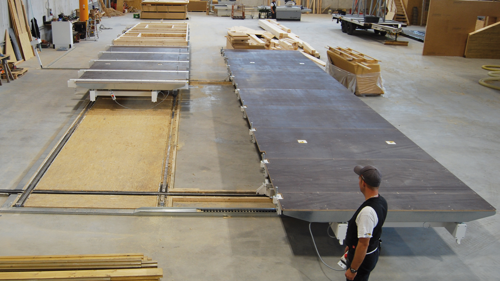 Versatility on the go: The two assembly tables can be positioned perfectly using the integrated running gear to allow simultaneous work on both tables.