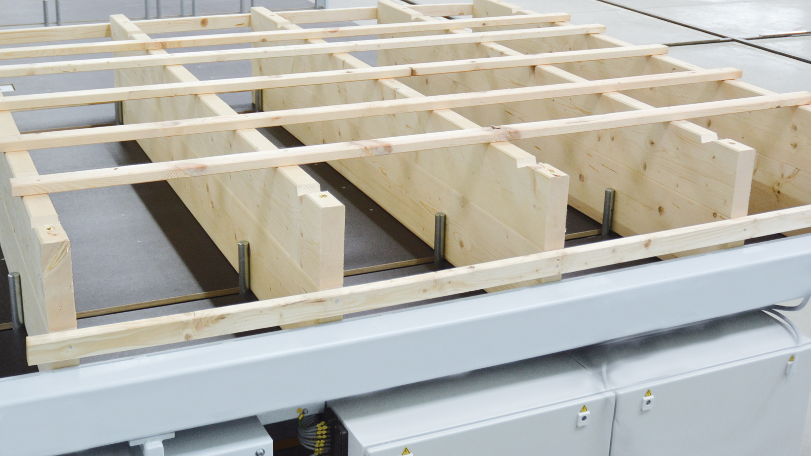 Multi-station assignment: The roof and floor table enables simultaneous processing of multiple elements on a single assembly table.