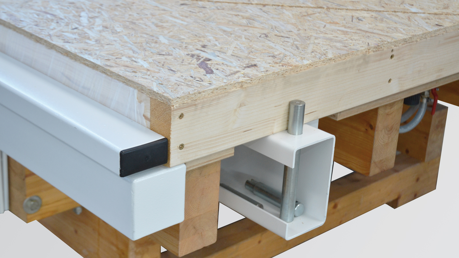 Option: Roof and ceiling clamp for easy production of roof and ceiling elements