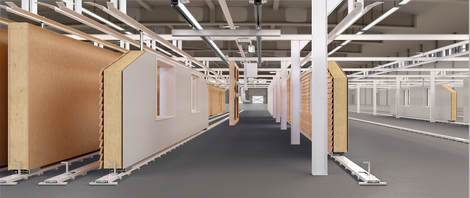 Transport of the installed panels via wall trolleys or loose rollers (individually selectable)