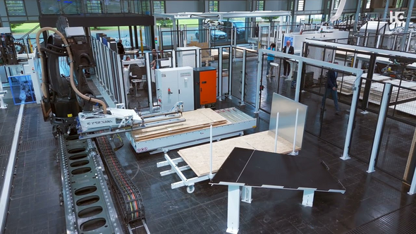 The FEEDBOT W-500 robot is the ultimate tool for automatically and precisely placing and fixing sheathing materials on the frame work. The robot can be combined with a multifunction bridge to create a flexible production cell. This production cell functions autonomously and takes the degree of automation in timber construction to the next level. The high speed increases efficiency and productivity in industrial production.