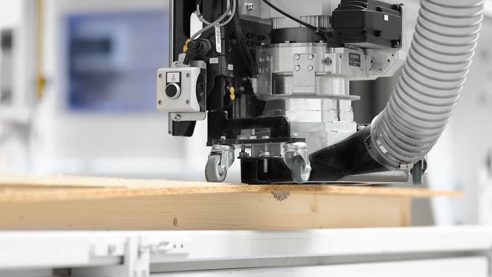 The large sawing unit enables extremely precise processing of soft wood fiber panels.
