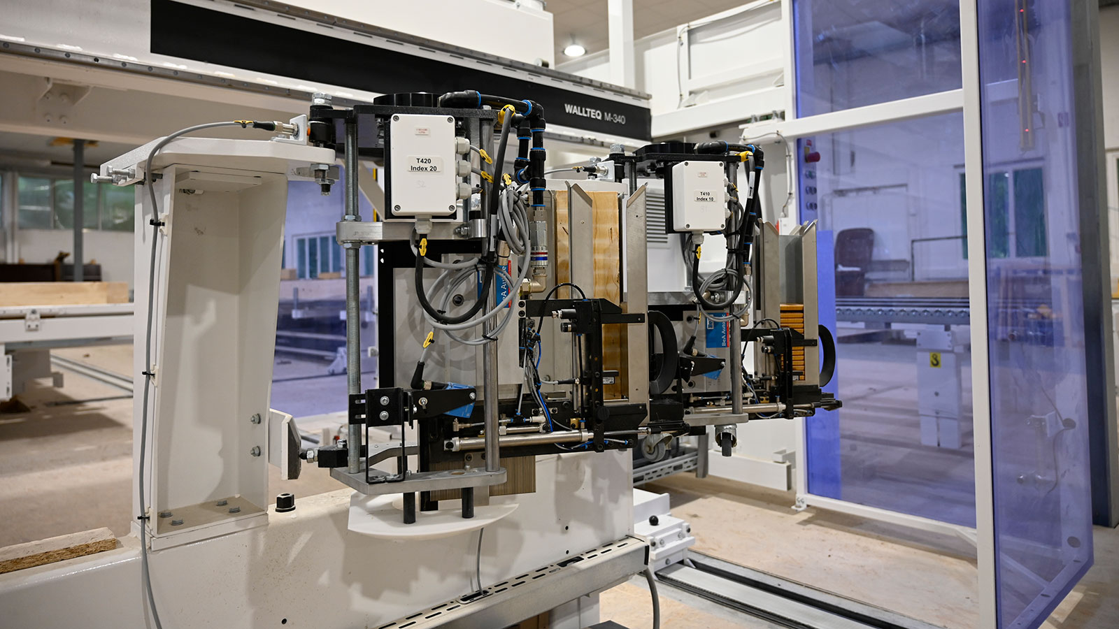 The WEINMANN WALLTEQ M-500 can be configured to perfectly meet individual requirements. In addition to securing and processing planking, a host of other applications are possible, such as precutting panels, solid wood processing, screwing and gluing.