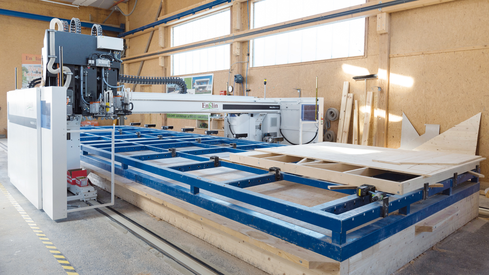 Enßlin: Absolutely. We were so impressed that we actually placed our order at WEINMANN Treff. The machine was delivered at the beginning of May, and the WALLTEQ M-120 then took over production almost straight away. The introductory phase was scheduled to last six days, but we were able to run production without any support from WEINMANN after just four days. At this point in time, we had already produced the elements for our first house. You have to understand that, since 1993, we had been planning all of the elements in a CAD system and had corresponding standards for this in our company. So the changeover wasn't so severe, even though we had to invest a couple of hours in adjusting the work steps to the machine processes. Of course, we made small adjustments to the multifunction bridge later on to match our requirements, for example with regard to suction when trimming thick soft wood fiber panels. But the equipment and processing scope cover our needs perfectly: Today, the speed that we achieve in production is one that we are nowhere near taking full advantage of with our current quantity. We also need one less employee in production, and we have been able to reassign this employee to assembly.
