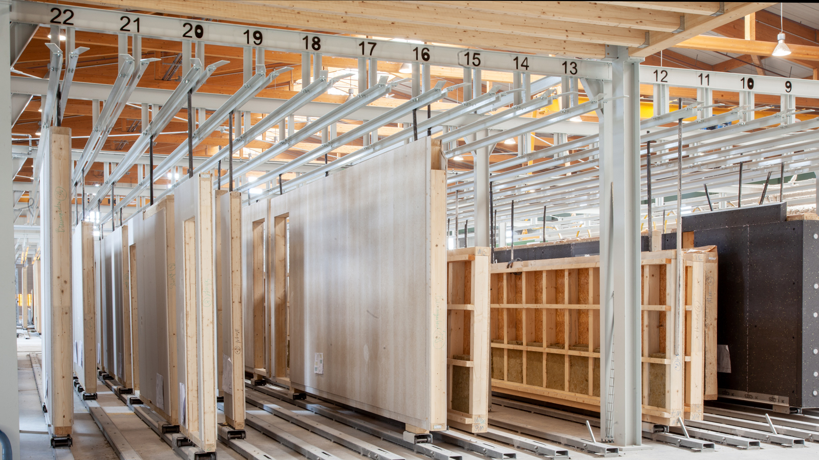 The sheathing layers, which were previously only applied at the construction site, are now fully fitted in the factory. This increase in the level of prefabrication is joined by other changes, such as the installation of ventilation and plumbing lines at the tables. In the extra-high walls for commercial construction, the fascia is now usually already integrated, whereas previously, it was a separate component: "We needed an additional lift to assemble it."