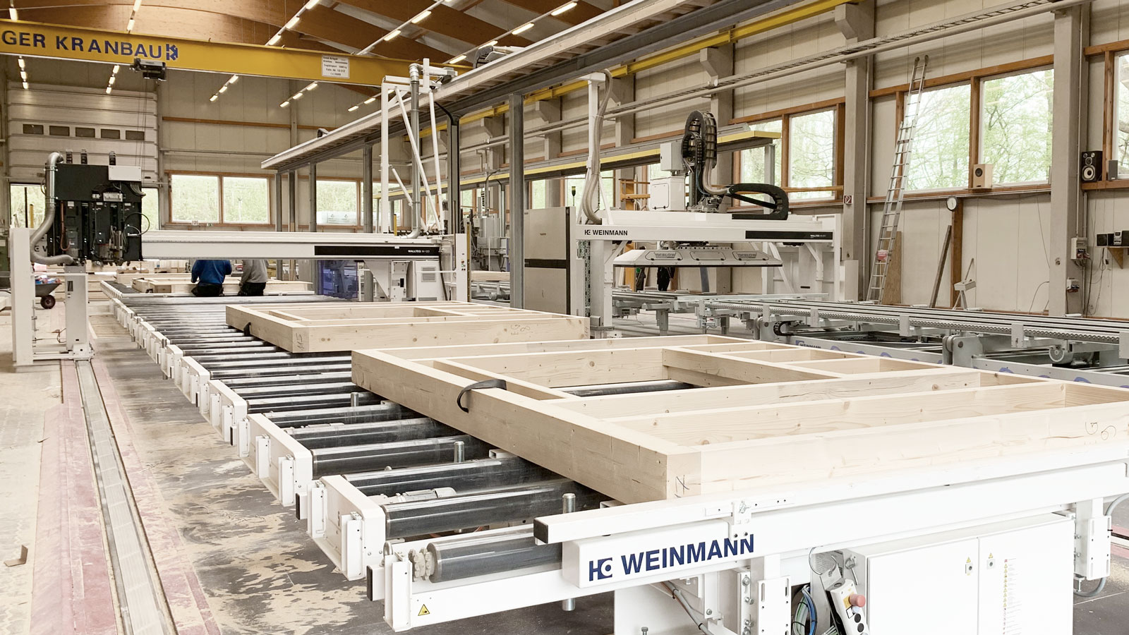 A good example of this kind of successive growth is Zimmerei Hamdorf, located in Fahrenkrug in Schleswig-Holstein. The company focuses on residential and commercial construction and on producing timber frame elements for smaller carpentry firms. With a workforce of 46 people, it also manufactures and assembles nail plate binders, covers roofs and constructs facades. This year marks a good decade since managing director Daniel Hamdorf first reached his company's limits in terms of production capacity for timber frame elements. At that time, Zimmerei Hamdorf produced about six wooden houses a year; despite 2009 being in the middle of the financial crisis and the firm not necessarily being located in an area of the country known for timber construction, demand for timber construction products was rising strongly. To take advantage of this upswing, Hamdorf built a new production facility and invested in a WEINMANN three-table system. The company's existing WEINMANN assembly table was incorporated into the new production line as a table for frame work production, and a fifth table was added a little later. This fifth table was used as a buffer table and for special processing, such as producing facades. All things considered, the new production line increased the carpentry firm's timber construction capacity tenfold: from 6 to 60 houses a year or the equivalent in m2 elements. This enabled the Fahrenkrug-based company to pull through until around 2019 when – even though capacity had been increased to around 100 houses per year through the introduction of two-shift operation – the firm once again reached the limits of its growth. "I believe we've earned a good reputation in the region through a large number of our own projects and projects that have been realized by our timber construction customers," explained Daniel, describing the reasons behind his success. "Furthermore, with its high quality standards and good carbon footprint, timber construction is increasingly in tune with the spirit of the times, even in the north. This is why it's now a firmly established construction method for public and commercial customers."
