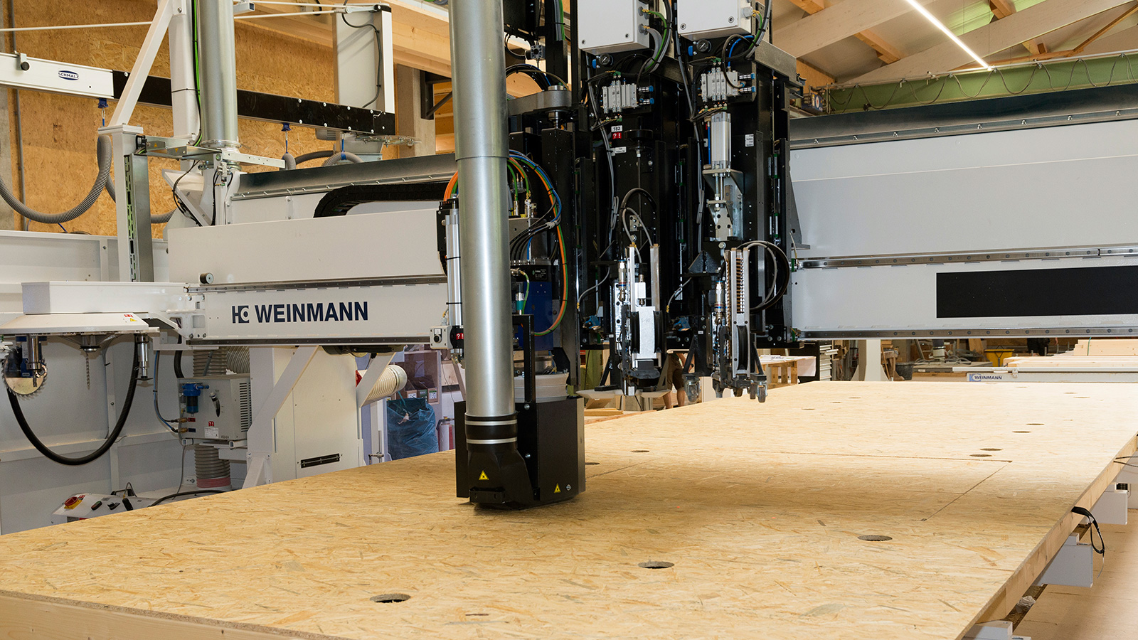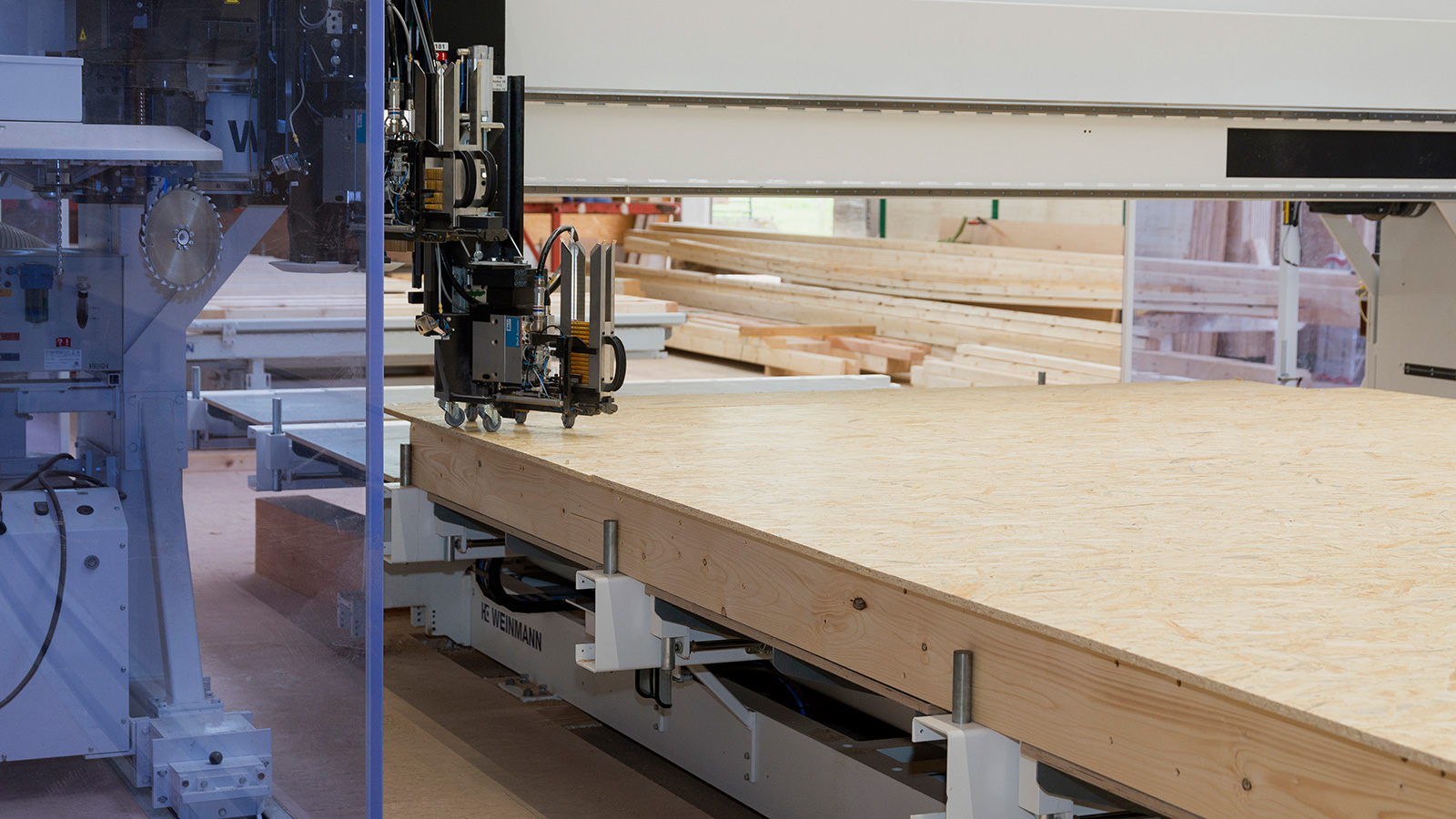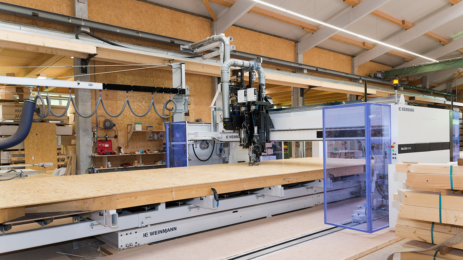 Both of them undertook training in Lonsingen to prepare for their new tasks: "This enabled them to continue production on the fly after the production line was delivered in June 2021." This was part of a support process in which Stefan was continually given expert guidance and good ideas, "such as advice on how to position the crane, panel lifter and new suction device so that they didn't collide with each other in the rather small hall." His conclusion after commissioning is positive too: It has already become apparent that "we've reduced our production times by about 30 percent, and there's still room for improvement. With more personnel, we could significantly increase our production volumes, and with optimized logistics, we could use the line to manufacture roof and ceiling elements too." These plans will be implemented at some point in the future — currently there is no time due to high utilization. Simplified quality management is taking some of the stress out of the situation: "Firstly, the production line is significantly improving precision—a crucial reason why we invested in automation—and secondly, it's easier to compile documentation for external quality control because we automatically have all the important data in the machine." The bottom line is an increase in quality, which all the company's clients view as important too. "We're currently in the process of applying for a larger property in Karlsruhe and a delegation has already been to assess the operation. The fact that we have invested in the quality and value of our products builds confidence." The future is equally bright in Schuttertal, where Stefan Göppert expects the number of orders to rise in the future, despite difficulties in procuring timber.