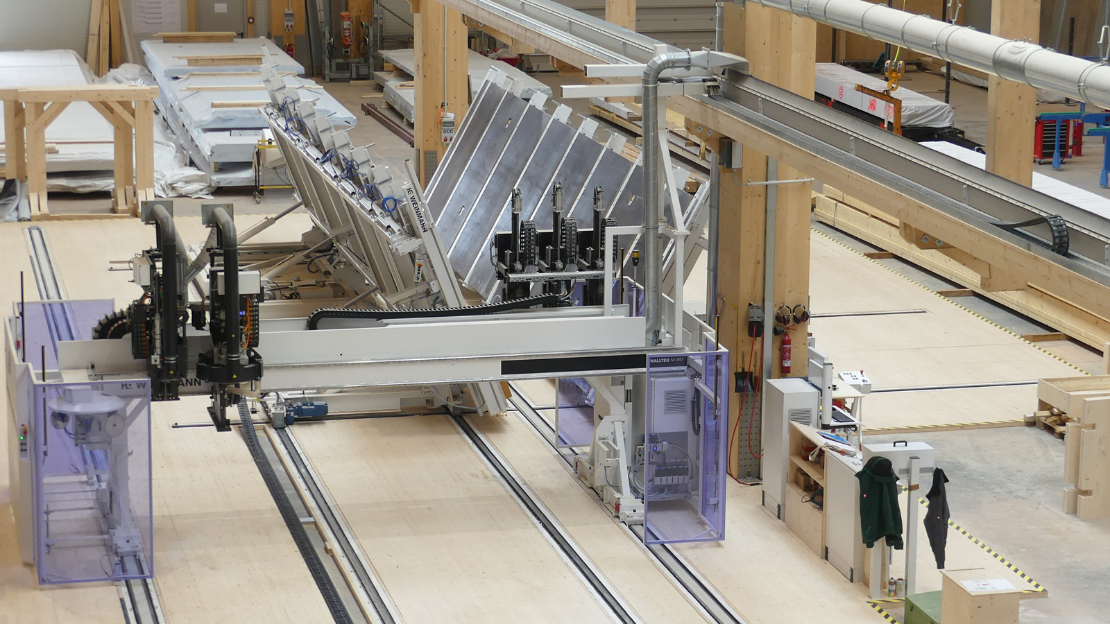 Zimmerei Gottschall has been producing wood-frame detached houses for more than 40 years. Over time, the business has expanded its areas of expertise to include commercial construction and the use of cross-laminated timber components. Increasing demand was pushing the carpentry business to the limits of its capacity, which meant it was no longer able to undertake projects for long-standing customers. The owner of the business, Jürgen Gottschall, therefore made the decision to increase the size of the business. It was clear to him that the only way to achieve this was to increase the level of prefabrication, which would also address the ongoing issue of the shortage of skilled woodworkers. According to Jürgen Gottschall, "Each year the number of people employed in wood work decreases, while the demand for wood work increases rapidly. For me, prefabrication was the obvious solution, so I set out to significantly increase the level of prefabrication and therefore reduce personnel requirements at the construction site. To do this, tasks should be automated in the production facility." In addition to overcoming the issue of the shortage of skilled workers, prefabrication offers further advantages to the company. By moving tasks into the production facility, they are no longer so dependent on the weather. Furthermore, the quality of production that can be achieved inside the facility is significantly higher than what can be achieved on the construction site. It would also be more difficult and more time consuming to try and achieve this level of quality on the construction site. These developments prompted Gottschall to establish a new company: CLTECH GmbH & Co. KG. He moved Zimmerei Gottschall production to CLTECH in Kaiserslautern, just under 30 km away, to set up automated production there. The cross-laminated timber area was also expanded. The new building was ready for production in a very short time. Construction of the production facility began in November 2018 and production started in Kaiserslautern on April 4, 2019. Today, 15 employees work at the new site over a production area of 4500 m² and an office space of 500 m². Gottschall plans an annual production of approx. 15,000 m² worth of elements.