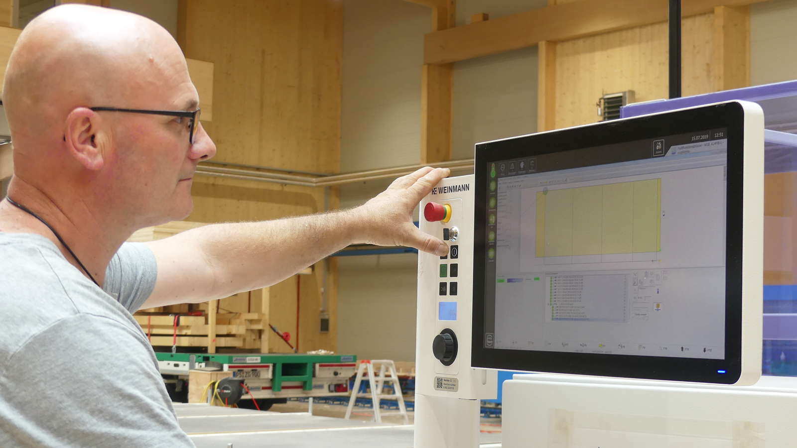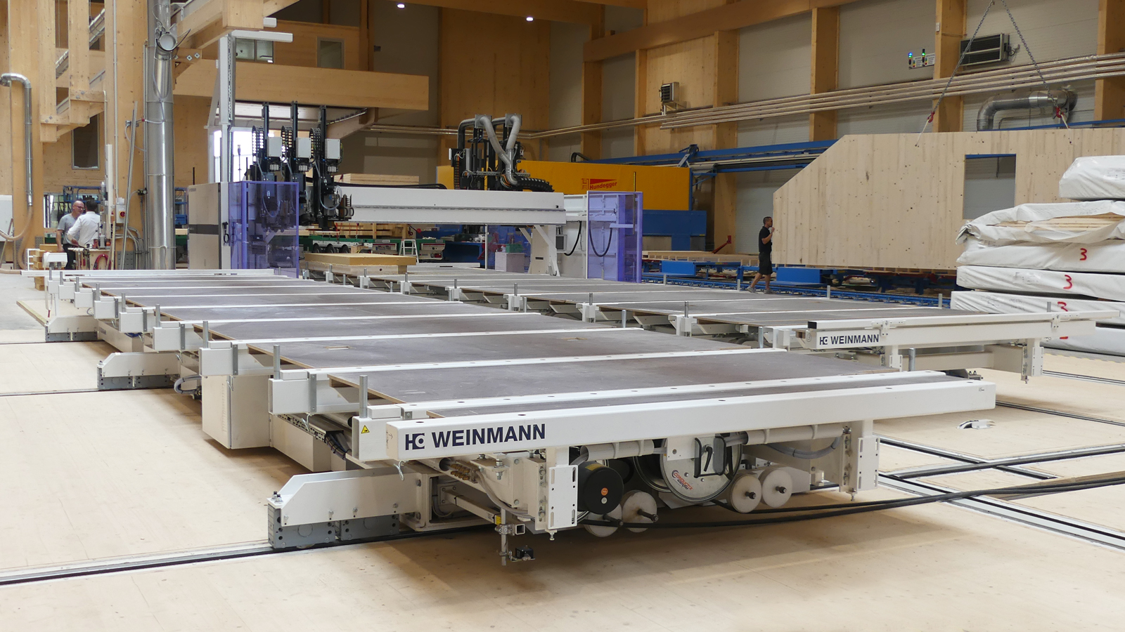 Every building that CLTECH produces is customer-specific: "we don't do series production — they're all customized constructions." This was one of the most important factors in the design and selection of the production systems. The systems needed to be flexible enough to allow a different type of wall, roof or ceiling to be produced each day without requiring time-consuming changeovers. Therefore, CLTECH decided on the compact system from WEINMANN. "The system enables maximum flexibility. It was important that we could produce a large number of different elements on one system, including both cross-laminated timber components and wood-frame construction elements, as well as wall, roof and ceiling elements. And this was the only system that could do this." The compact system consists of a WALLTEQ M-380 multifunction bridge as well as two BUILDTEQ A-570 carpentry tables, which allowed CLTECH the level of flexibility it needed. To additionally increase the level of prefabrication for post and panel-processing tasks, the company also invested in a Hundegger K2i industrial beam processing system and a gantry processing center.