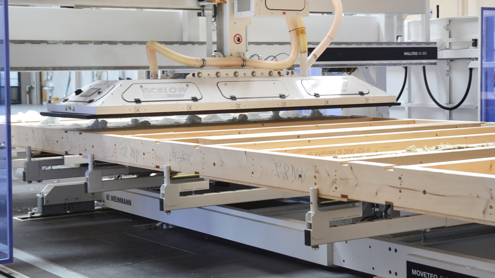 Because Terhalle Holzbau GmbH was no longer able to process the volume of orders with manual production methods, the company invested in automated production. As well as increasing capacity and the quality of components, the focus with this investment was on the ability to produce flexibly in batch size 1 and to insulate components automatically.