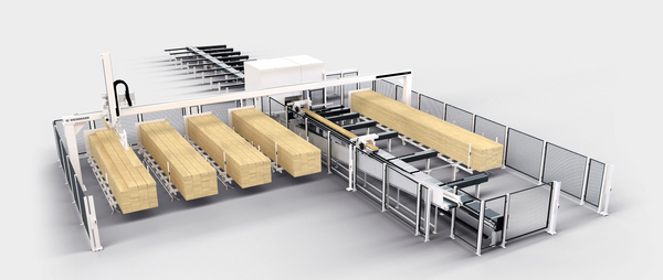 A highlight of the production line is the carpentry machine with fully automatic feeding and destacking. What effect does automated material handling have on production flow?
