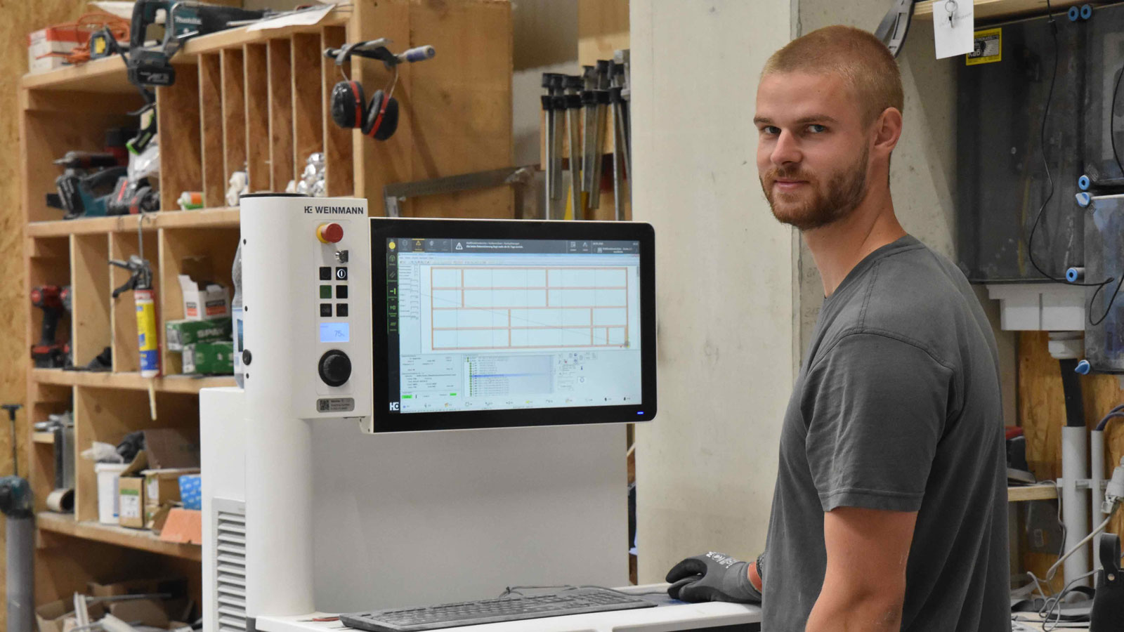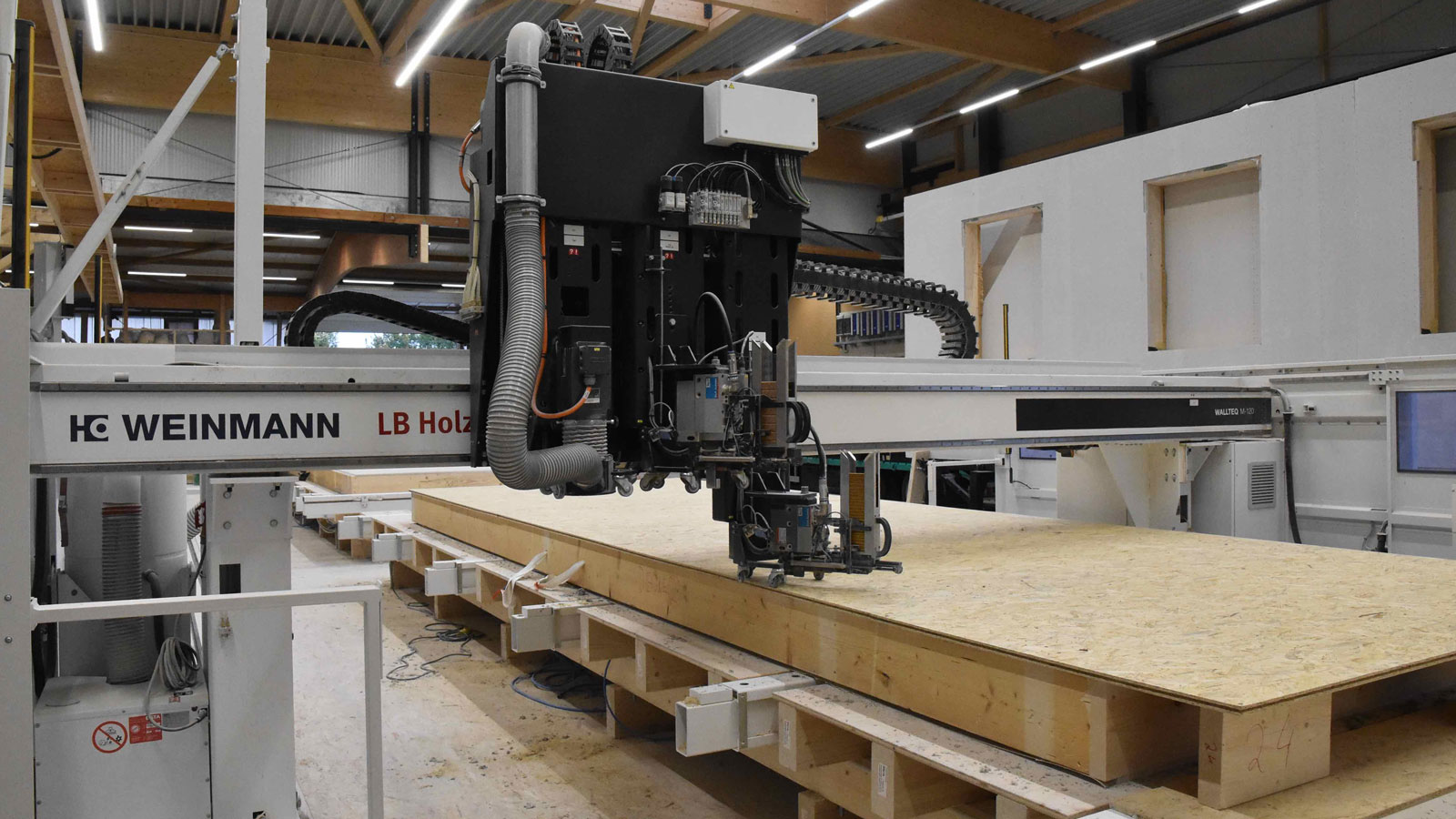 The new production system was delivered in March 2020 – punctually after the completion of the new production hall. There was then a startup phase, which can be seen as a smooth change from manual to automated production. "We had to do it that way, we couldn't allow ourselves a production standstill. That's why, after very good instruction from a WEINMANN technician, we continued production from a standing position. So far, that has worked for us without any problems." Important prerequisite: the machine-compatible details were created in the CAD software in advance and subjected to a test at WEINMANN and Cadwork. A young foreman in the company who specializes in work preparation was responsible for that. The new technology was also accepted straight away by the other employees – thanks to an improved market position, the employees' workplaces are secure and, thanks to the modernization, have become significantly more ergonomic. "Previously, when clamping, trimming or drilling, the employees had to crawl around on the elements," says Ludwig Böggering, looking back on the days of manual production.