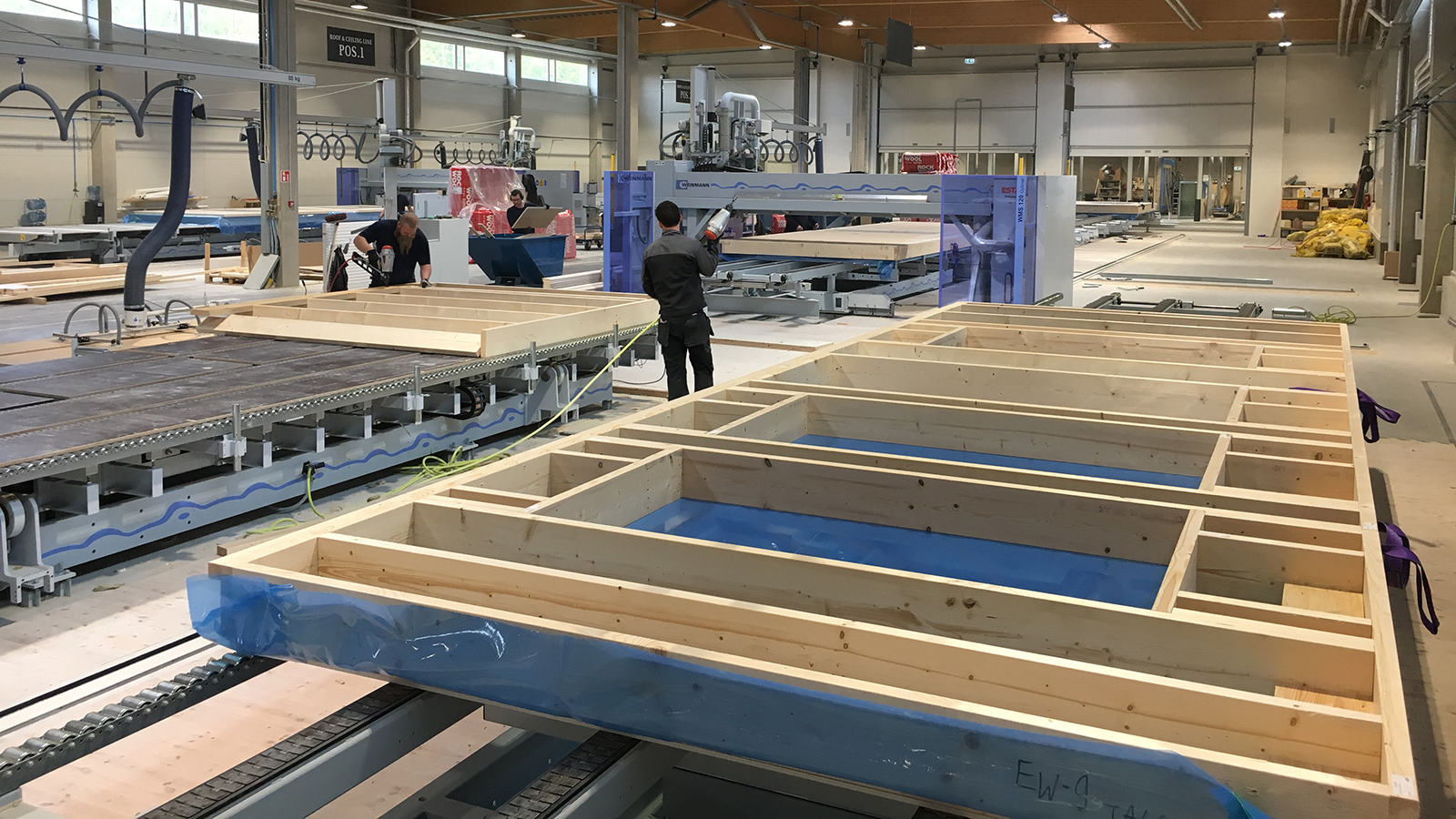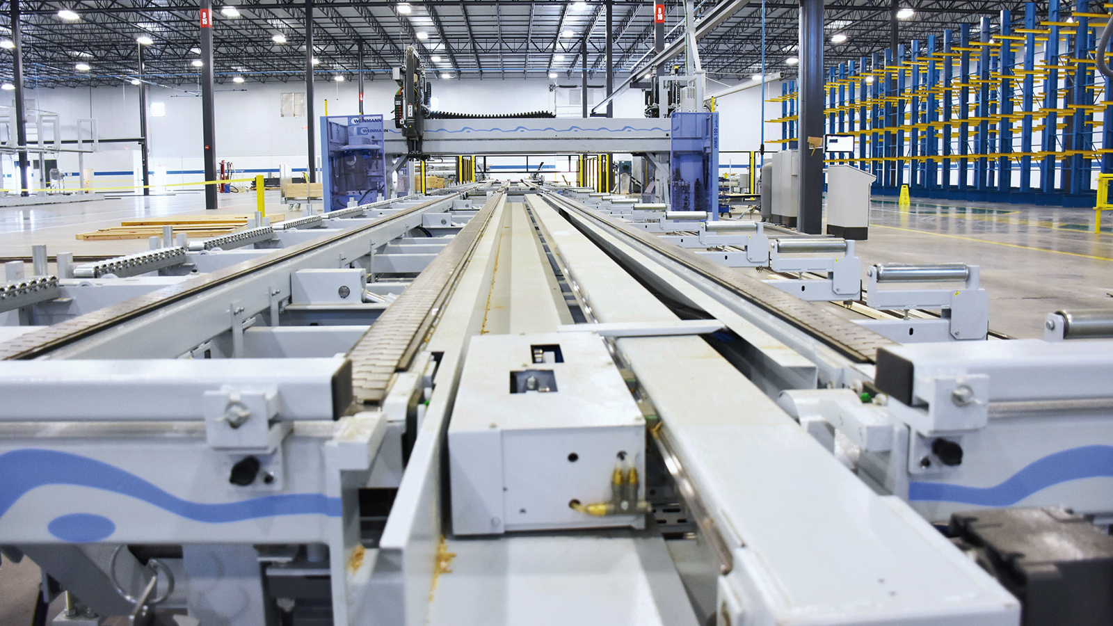 The next step for Blueprint Robotic Inc. was to build a 20,000-m² production hall in Baltimore, equipping it with WEINMANN production lines. "On the one hand, this machine manufacturer from Lonsingen, Germany can completely cover our needs thanks to its broad spectrum of processing machines," says Sascha Bopp. "The fact that the company has teams all over the world means it can also guarantee machine assembly in the United States. It also has good references: We approached several companies in Germany, all of whom recommended WEINMANN as a premium manufacturer." Last but not least: "We negotiated with WEINMANN's Managing Director Hansbert Ott, and he proved himself to be a trusted business partner with integrity. This is of great importance when you're dealing with such geographical distance and when so much money is in play."You only have to look at the equipment in the production hall to see that the American firm have invested a tidy sum. Taking up the majority of the hall are three automated production lines for wall production, which include a frame work station, eight further stations and three WMS 150 multifunction bridges. In addition, there is a roof and a ceiling production line with several work tables and two WMS 150 multifunction bridges.