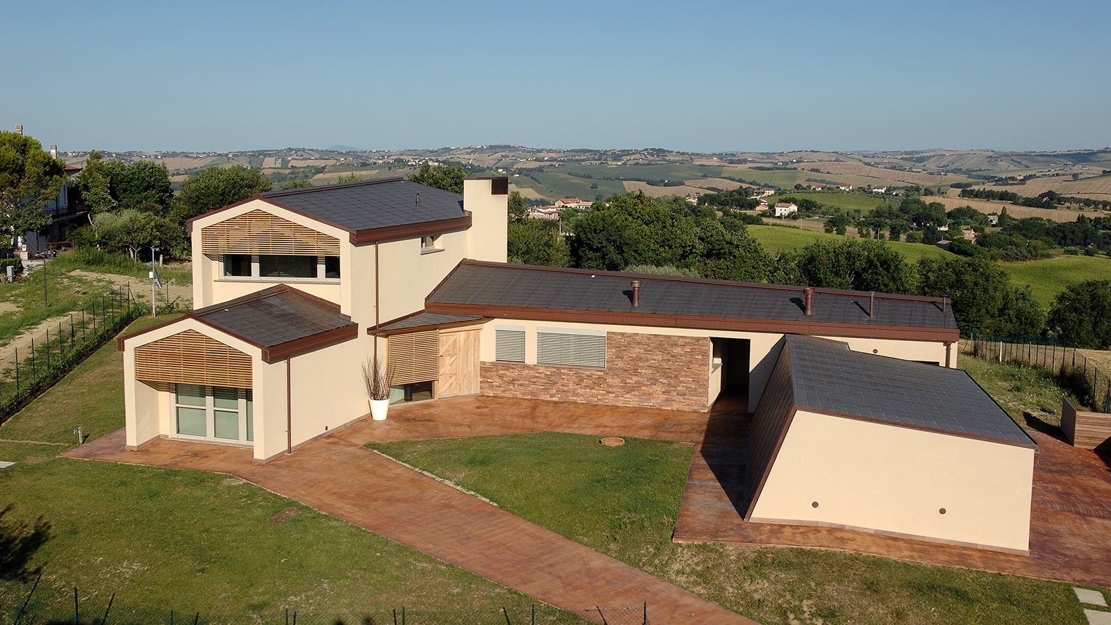 Subissati is a company based in Ostra Vetere, Italy. Founded in 1963, it currently employees around 50 people. It is a family-run business and the managing director is Paolo Subissati. Subissati produces around 100 timber frame and CLT objects annually, including houses and commercial buildings such as schools. Most of the buildings are supplied to the Marche, Tuscany and Romagna regions of Italy. The company site is spread over a total of 40,000 m² and includes two production facilities and an administration building. One production facility is used for painting work, while the other is used for the entire timber work process. All the raw timber required for timber frame construction is impregnated with organic salts in an autoclave. The houses are designed individually according to customer requirements; 90% are timber frame constructions, and the remaining 10% are CLT constructions.