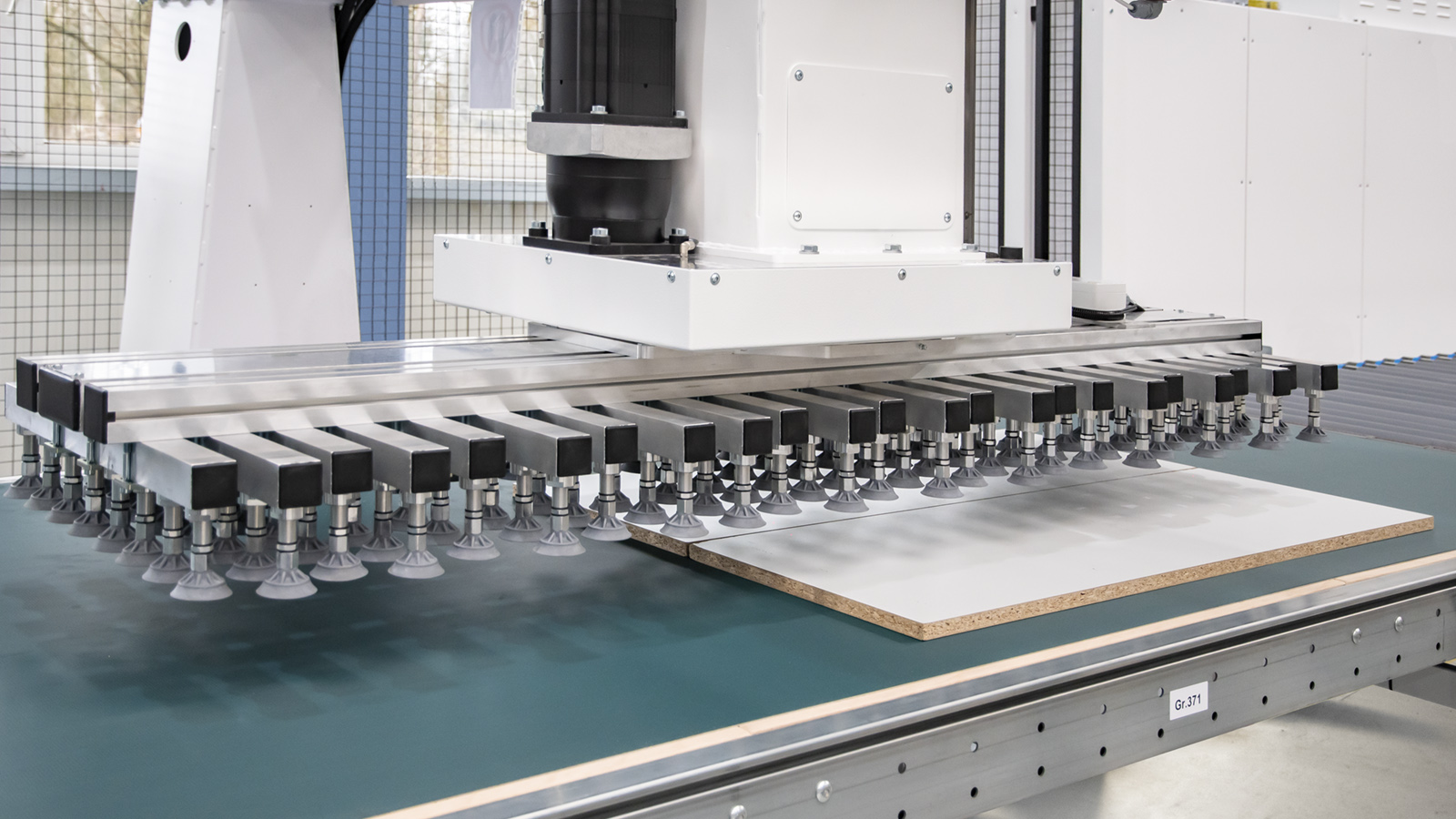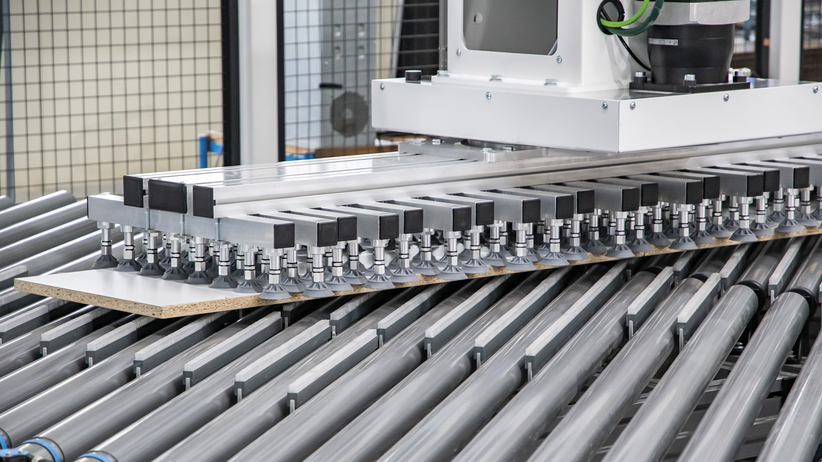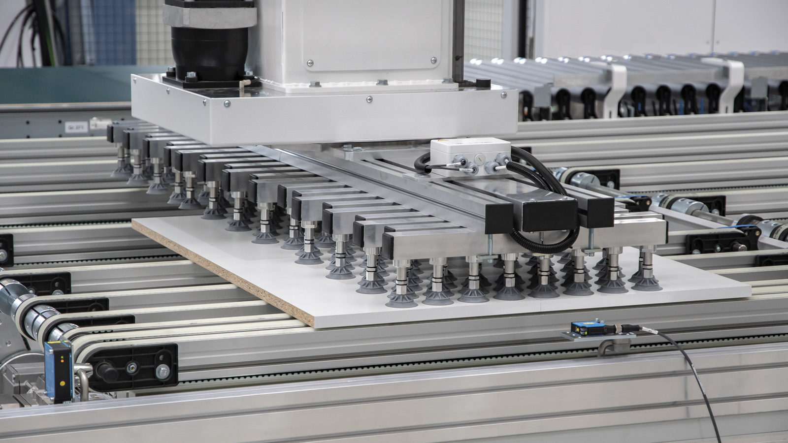 Die eingebundene Maschine zur Format- und Kantenbearbeitung bestimmt die Geschwindigkeit der Automatisierung