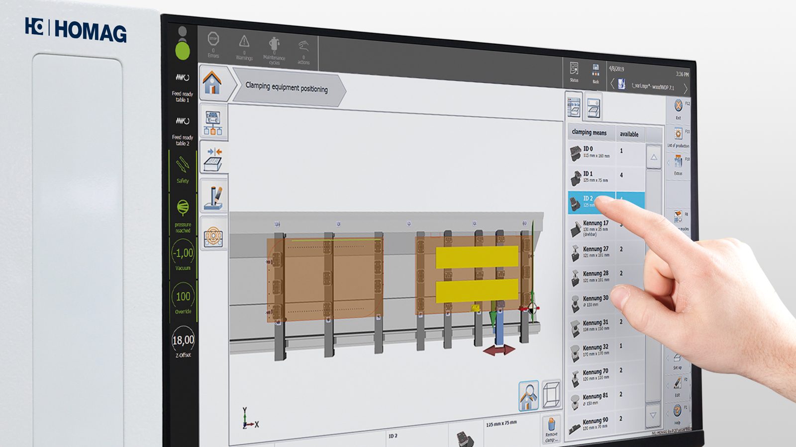 | Werkstückbreite Y [mm] (Kanten anleimen und nachbearbeiten, Anschlag hinten) | 1.570 | ||