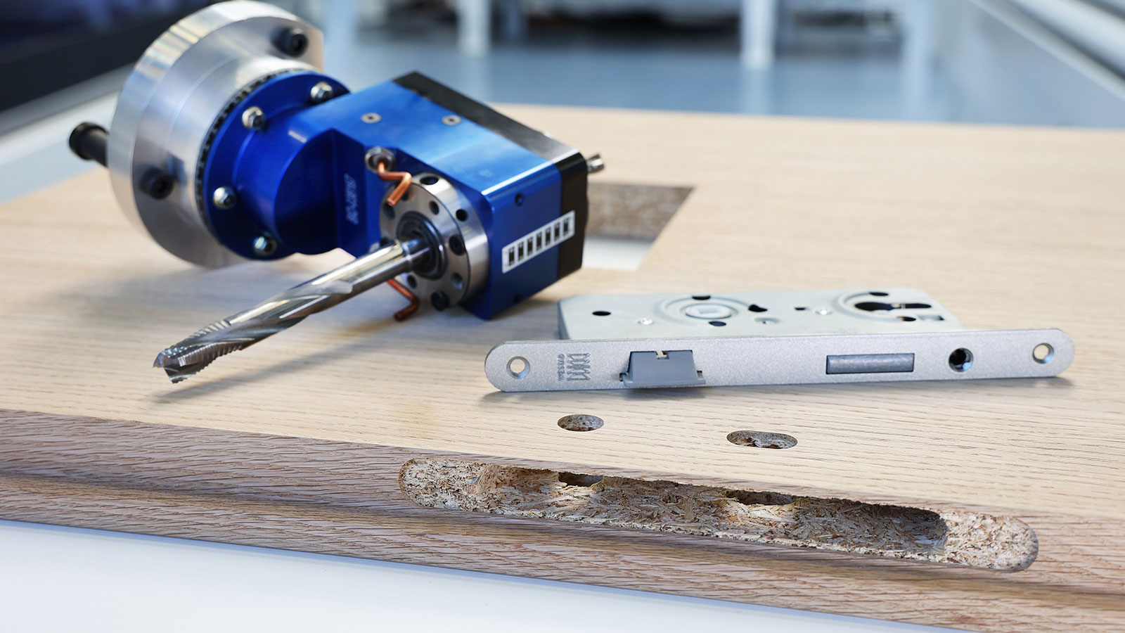 Ein Dübelaggregat und eine C-Achse mit Aggregateschnittstelle stehen zur Wahl.