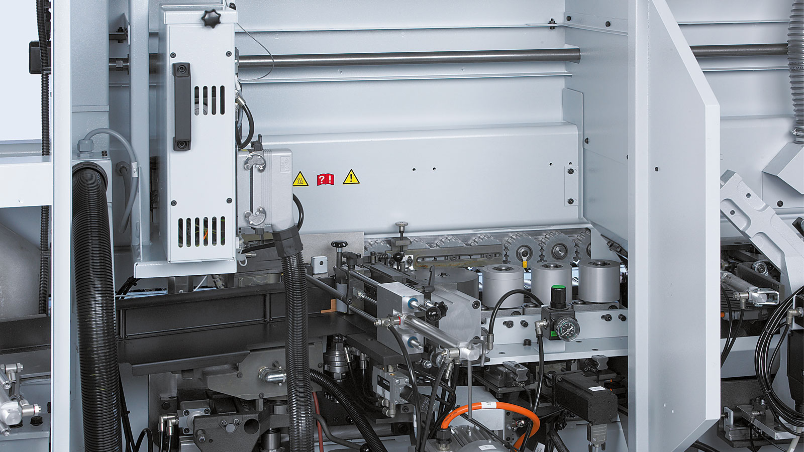 Neue Magazinoption: Höhenverstellung für unterschiedliche Kantenüberstände. Die Servokantenzuführung erhöht die Präzision und Langlebigkeit.