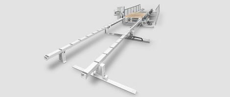 Mit dem STORETEQ H-100 schaffen Sie für Ihre komplette Materiallogistik eine vollautomatische Lösung rund um das Herstellen Ihrer Riegelwerke. Das Beschickungsportal entnimmt die Stiele vom Materiallagerplatz und stellt sie der Riegelwerkstation über einen zusätzlichen Abholplatz zur Verfügung. Von dort werden die Stiele über Rollgänge direkt der Riegelwerkstation zugeführt.