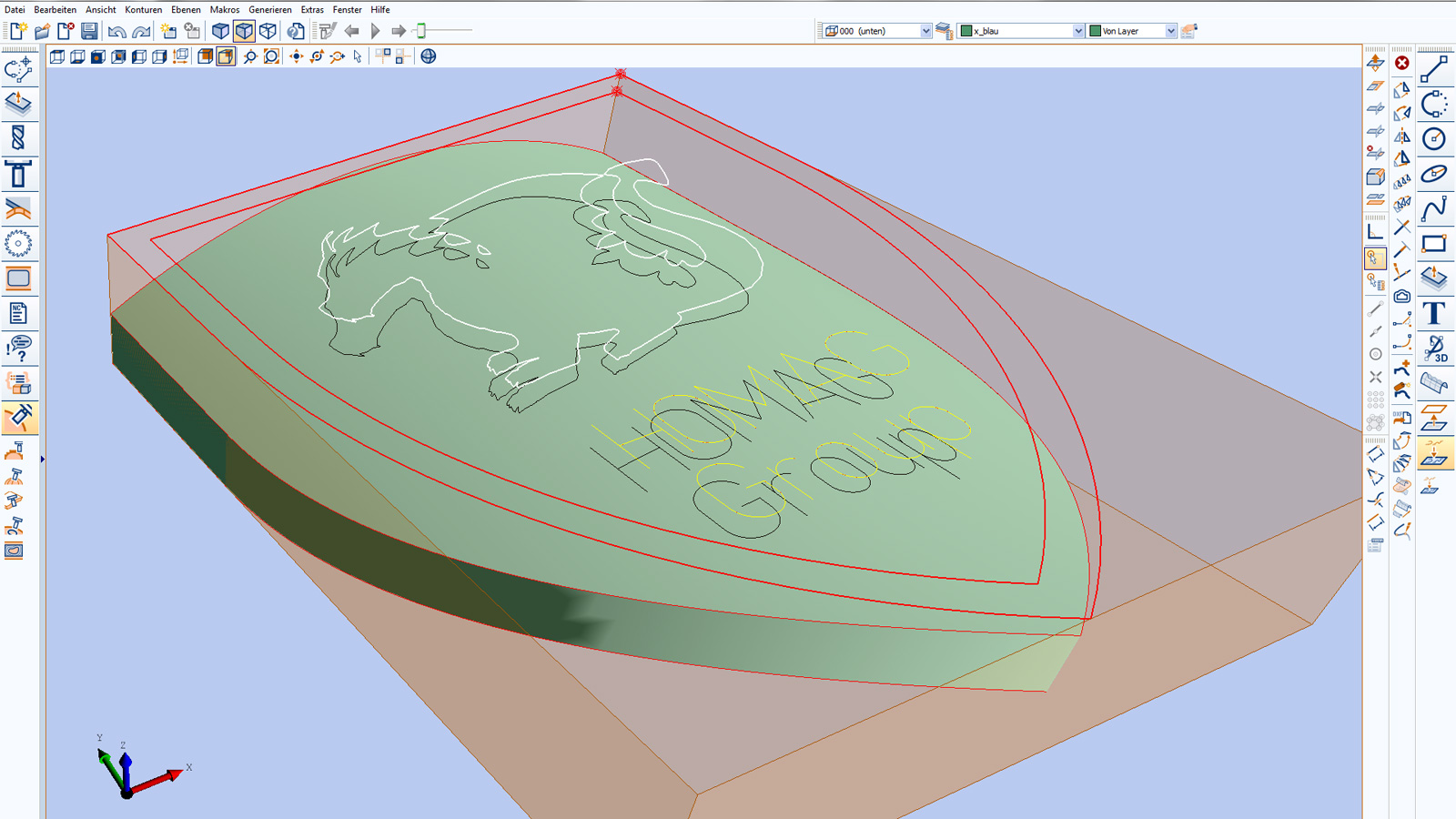 Mit den 2D-Zeichenfunktionen erstellen Sie Konturzüge komfortabel und schnell. Auf einfache Art und Weise erzeugen Sie 3D-Flächen oder öffnen fertige 3D-Modelle direkt in woodWOP.