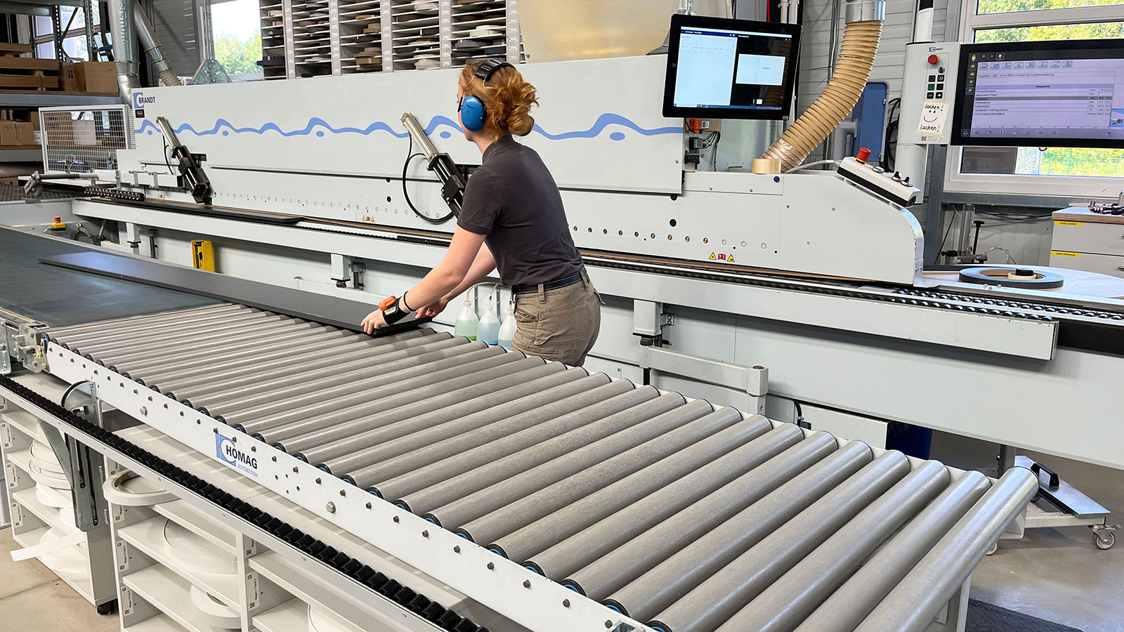 Ob CNC-Maschinen (CENTATEQ), eine Plattenaufteilsäge SAWTEQ B-300, eine Kantenanleimmaschine (EDGETEQ) oder eine STORETEQ S-200 als Säge-Plattenlagerkombination, die Tischlerei besitzt überwiegend Maschinen von HOMAG. Nicht nur die Maschinen ermöglichen einen effizienteren Arbeitsalltag, sondern auch der Einsatz von digitalen Produkten erleichtert den Produktionsprozess enorm. Dabei setzen Manuel zum Buttel und seine Mitarbeiterin Katharina Höppner auf den Kantenband-Assistenten von HOMAG. Der Kantenband-Assistent, auch bekannt als Edgeband Management Set, ermöglicht einen Überblick über alle Informationen zum Kantenmaterial und auch zum Materialbestand. Das richtige Kantenband schnell und einfach finden ohne langes Suchen und den Überblick behalten – genau das war der Wunsch des sympathischen Geschäftsführers. Deshalb war für ZB Holzsysteme sofort klar, dass der Kantenband-Assistent von HOMAG die richtige digitale Lösung dafür ist.