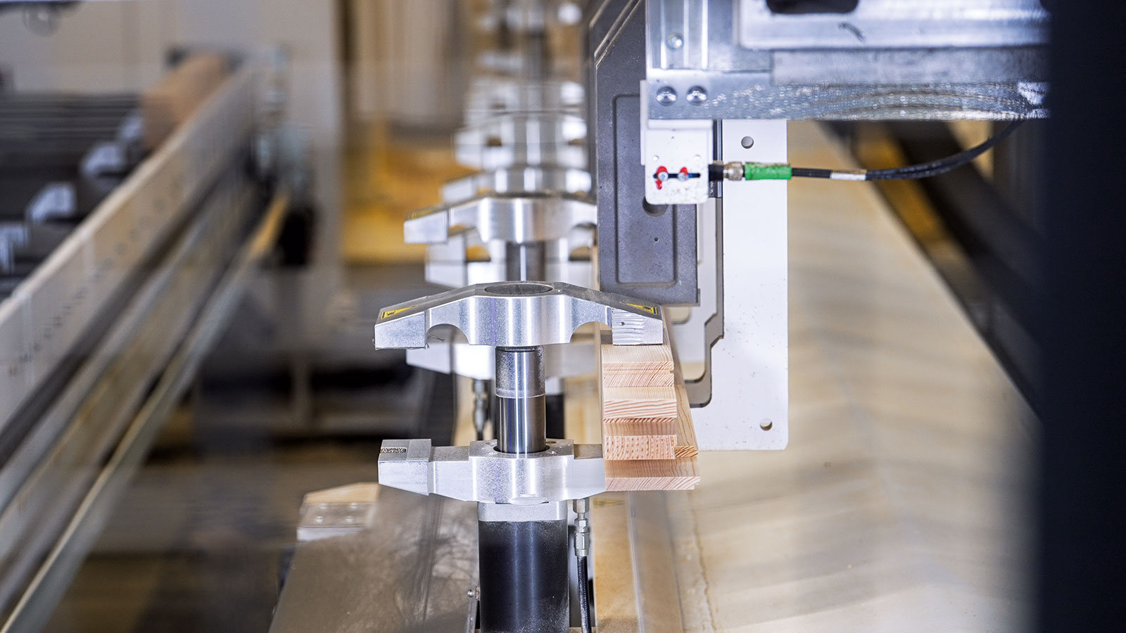 Holz ist nach wie vor der Werkstoff der Wahl, in der Fertigung setzt das Unternehmen längst auf Hightech. Herzstück der Produktion sind seit 2024 zwei neue CENTATEQ S-900 Maschinen. „Im Verbund mit den zwei vorhandenen BMG-Maschinen machen sie eine extrem flexible Auftragssteuerung möglich“, so Bastian Timm. Die Platzverhältnisse in der Halle waren eine Herausforderung. Gemeinsam mit HOMAG fand man eine Lösung, die auf den Zentimeter passt: Pfeiler der Deckenkonstruktion sind direkt in die Maschinen integriert, eine der Anlagen wurde um gut einen Meter gekürzt.
