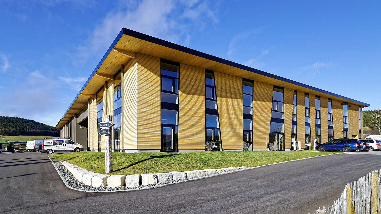 Seine erste, 16 x 20 m große Halle hatte der Zimmermeister Ende 2006 noch allein mit einigen Freunden und Subunternehmern gebaut. Zwar hatte sie zu wenig Kranhöhe, aber das junge Holzbauunternehmen entwickelte sich gut - unter anderem dank Aufträgen aus der nahen Schweiz, wo Fluck 2009 eine Niederlassung gründete. Seither ist der Umsatz im Nachbarland auf etwa 40 Prozent des Gesamtumsatzes gestiegen. 2015 hatte das Unternehmen nach mehreren Hallenerweiterungen eine Stückzahl von 15 Holzhäusern erreicht. Die Belegschaft war auf 30 Mitarbeiter gewachsen, man übernahm neben den Holzhäusern Objektbauten und klassische Zimmereigewerke. Alle Zeichen standen auf Wachstum, seit Fluck einen Vertriebsmitarbeiter in sein Unternehmen geholt hatte: "Die Abschlussquote war gut, die Anfragen überstiegen bald unsere Kapazität." Das 2000 m² große Grundstück der Firma war nach mehreren Hallenerweiterungen ausgereizt. Angesichts seiner Kapazitätsprobleme verlegte Fluck den Firmensitz deshalb in ein neues Gewerbegebiet. Direkt neben der B27 bietet es dem Holzbauunternehmen eine optimale Verkehrsanbindung. Florian Fluck kaufte zusätzlich zum neuen Hallenstandort noch zwei weitere Parzellen als Wachstumsreserve.