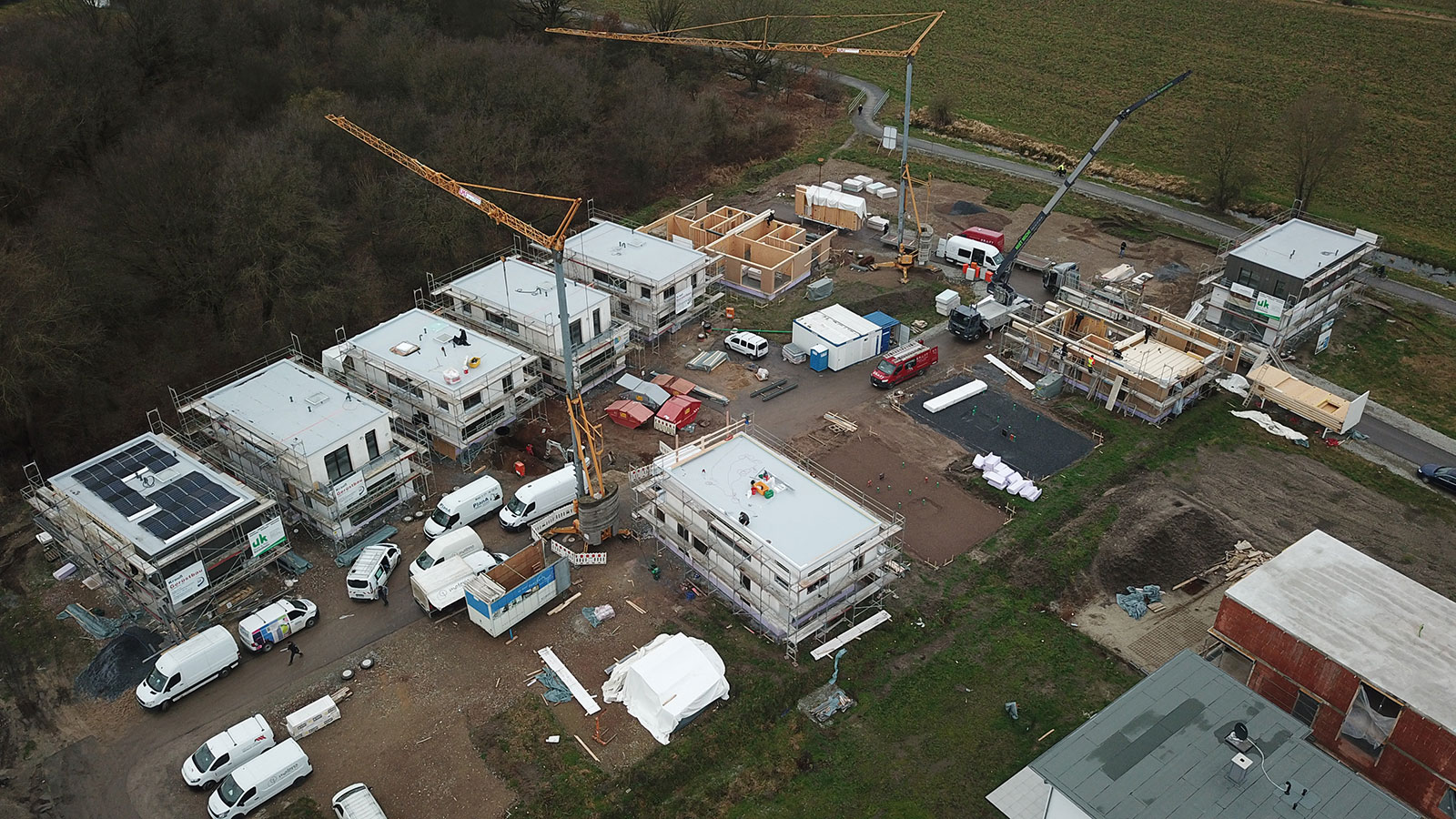 Dies auch im Baugebiet „Auf dem Rode“, wo sie 18 Einfamilienhäuser in standardisierter Bauweise errichtet hat. Dabei nutzte sie die Vorteile des seriellen Bauens und einer automatisierten Fertigung. Einer der zentralen Einflussfaktoren für den Holzbau ist derzeit die Entwicklung auf dem Arbeitsmarkt. Denn angesichts einer exorbitant guten Auftragslage ist es vor allem der Fachkräftemangel, der die Spielräume von Holzbauunternehmen limitiert. Einer der ersten Schritte, um die Auswirkungen des Fachkräftemangels zu dämpfen, ist eine umfassende Digitalisierung und Automatisierung der Unternehmen. Auch dieser stößt allerdings an Grenzen, wo es an Bauleitern oder Montagekräften auf der Baustelle mangelt. Eine Situation, in der die Fantasie und Kreativität der Unternehmensführungen gefragt ist.