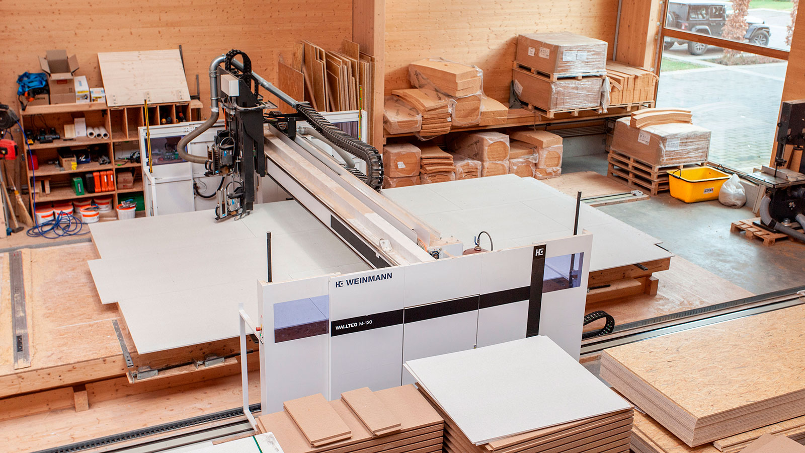 Sollte die Nachfrage nach WDVS wider Erwarten stark zunehmen, könnte in Soest ein Upgrade auf eine größere WALLTEQ auf der Agenda stehen: „Wenn viel WDVS über 40 mm verarbeitet wird, empfiehlt sich ein zusätzliches Sägeaggregat und damit ein Wechsel auf eine größere Multifunktionsbrücke, zum Beispiel auf die WALLTEQ M-380.“ Vielleicht aber auch das nächste innovative Geschäftsmodell. Zumindest kann sich Geschäftsführer Rolf Schottmüller aus heutiger Sicht für diesen Fall vorstellen, bestehende Kooperationen mit befreundeten Zimmereien auszuweiten: „Dann würden unsere Partner einen Teil der Wände produzieren, während die große Masse nach wie vor über unsere Fertigungslinie läuft. Die Zimmerer könnten uns außerdem in der angespannten Personalsituation bei der Montage entlasten, während wir unsere Aktivitäten noch weiter in Richtung Projektentwicklung, Planung, Generalunternehmer- und Investorentätigkeit entwickeln.“