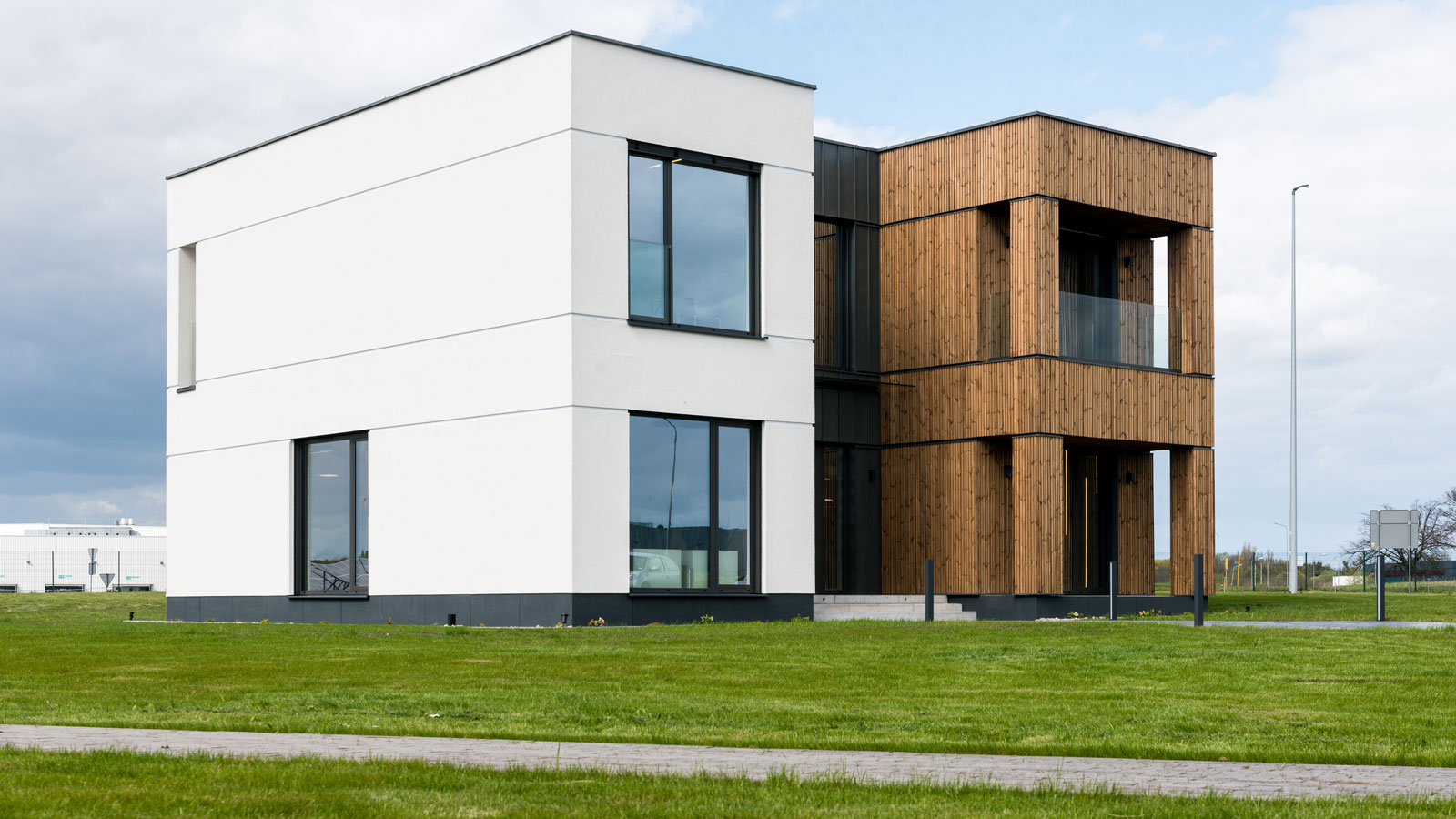 Ein Angebot, das mit seinen seriellen und nachhaltigen Aspekten nahtlos in unsere Zeit passt, wie das Lob von Bundebauministerin Klara Geywitz bestätigt, die das Werk in Toruń kürzlich besuchte. Ebenfalls in die Zeit passt ein Außenwand-Standard, der mit 140 mm gedämmtem Holzrahmenwerk, zwei Gipsfaserplatten innen und einer OSB-Platte mit Vorhangfassade oder WDVS außen die bauliche Voraussetzung für einen guten Energiestandard bildet. Bei MOD21 geht man aber noch weiter: Interessenten können mithilfe eines CO2-Rechners auf der Website des Unternehmens nachrechnen, wie viel CO2 beim Bau ihres Gebäudes freigesetzt wird – kein Showeffekt, steht doch hinter dem Rechner eine aufwändige Studie der Universität Krakau, in die „eine Unmenge der für Bauprojekte relevanten Daten einflossen“. Bei einem aktuellen Projekt – einem Flüchtlingswohnheim mit 3.700 m2 Nutzfläche in München – ergab die Berechnung eine CO2-Einsparung von 97 Prozent im Vergleich zu einer konventionellen Bauweise. „Die LKW-Tansporte schlagen bei uns natürlich zu Buche, weshalb wir derzeit über Wasserstoffantriebe nachdenken“, erläutert Theodor Kaczmarczyk. „Aber die Transporte stehen in keiner Relation zur monatelangen Reiseaktivität von Handwerkern auf einer konventionellen Baustelle.“ Für viele Kunden ist dieser Nachhaltigkeitsaspekt Grund genug, die etwas höheren Baukosten der Holzmodulbauweise zu akzeptieren. Zumal sich die Mehrkosten dank der kurzen Abwicklungszeit relativieren: Wer bis zu 70 Prozent schneller baut, erspart seinem Kunden Finanzierungskosten und ermöglicht ihm, durch Einzug, Vermietung oder Verkauf schneller Geld zu verdienen. Rechnet man diese Vorteile ein, sind Modulbauten in den Augen von Theodor Kaczmarczyk in etwa preisgleich mit anderen Bauweisen.