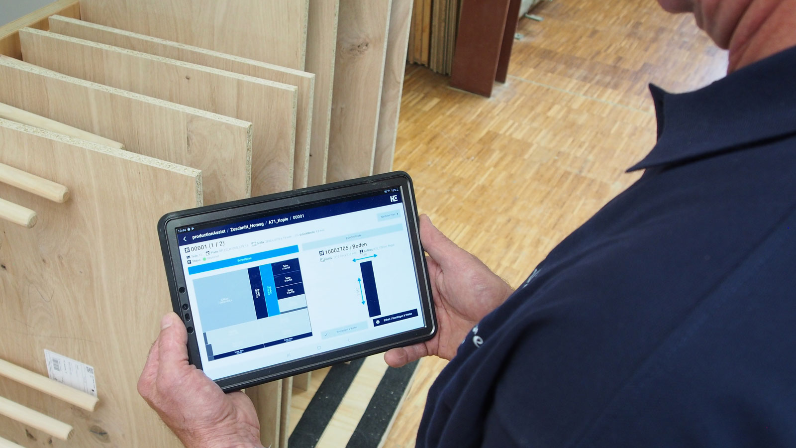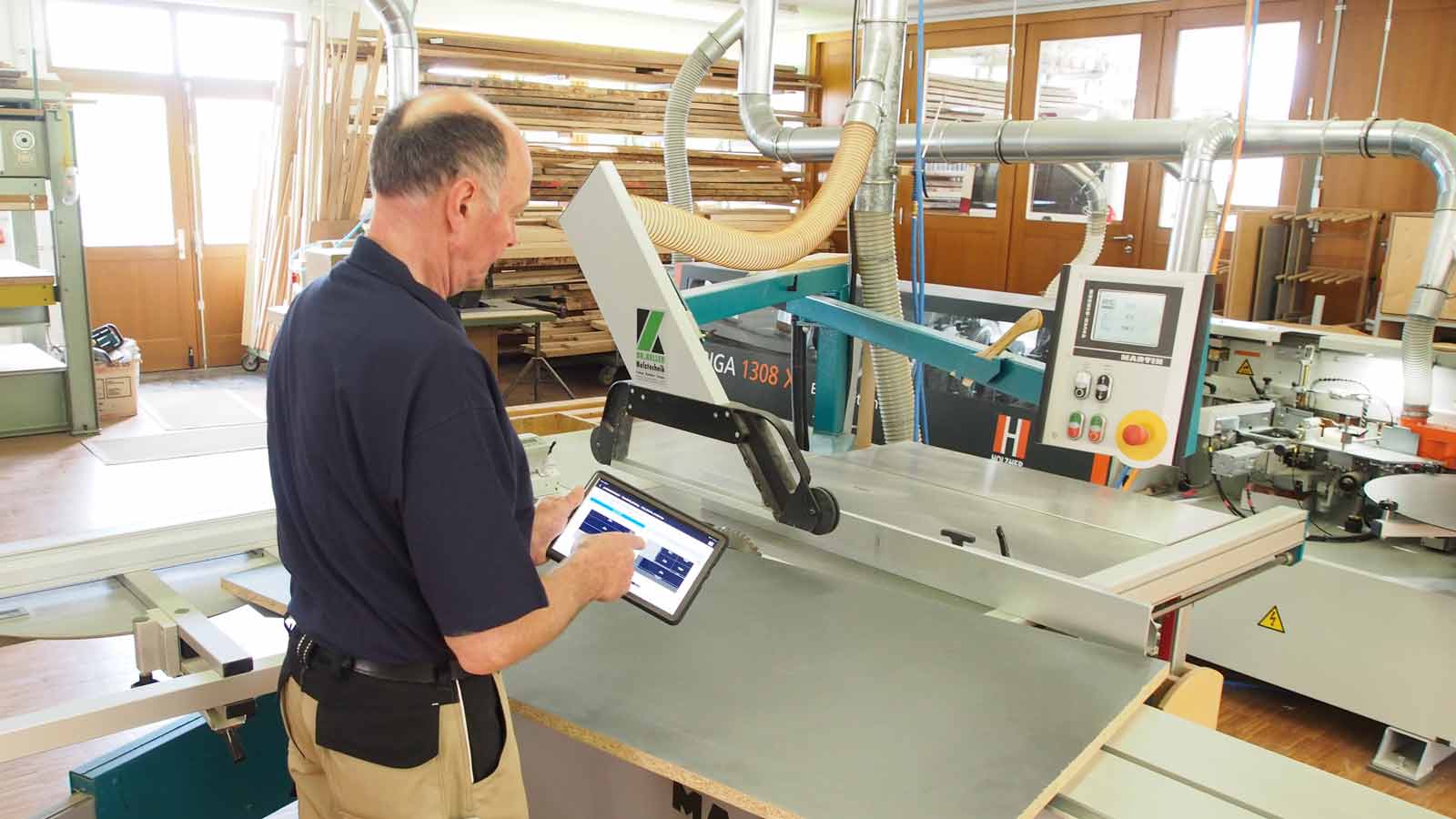 Vor gut einem halben Jahr kam Fritz Strom mit Homag ins Gespräch und wurde dabei auf ein „Projekt“ aufmerksam, mit dem der Schwarzwälder Weltmarktführer mit Blick auf das Schreinerhandwerk kurz vor der Markteinführung stand: Digitale Assistenten.Das machte den Schreinermeister so neugierig,dass er es schaffte, in die ausgewählte Riege einiger Pilotanwender aufgenommen zu werden. Denn sein Betrieb entspricht genau der Zielgruppe, die Homag mit diesen neuen Produkten abholen will: Kleine Schreinereien, die ggf. auch nur auf Standardmaschinen produzieren und trotzdem spürbar von den Möglichkeiten der Digitalisierung profitieren sollen. Ganz geerdet, unkompliziert im Handling und sehr effektiv im Ergebnis. Fritz Strom erhielt also genau den digitalen Helfer, von dem er sich besonders viel erhoffte: Den Zuschnitt-Assistenten, offiziell Cutting-Production-Set genannt.