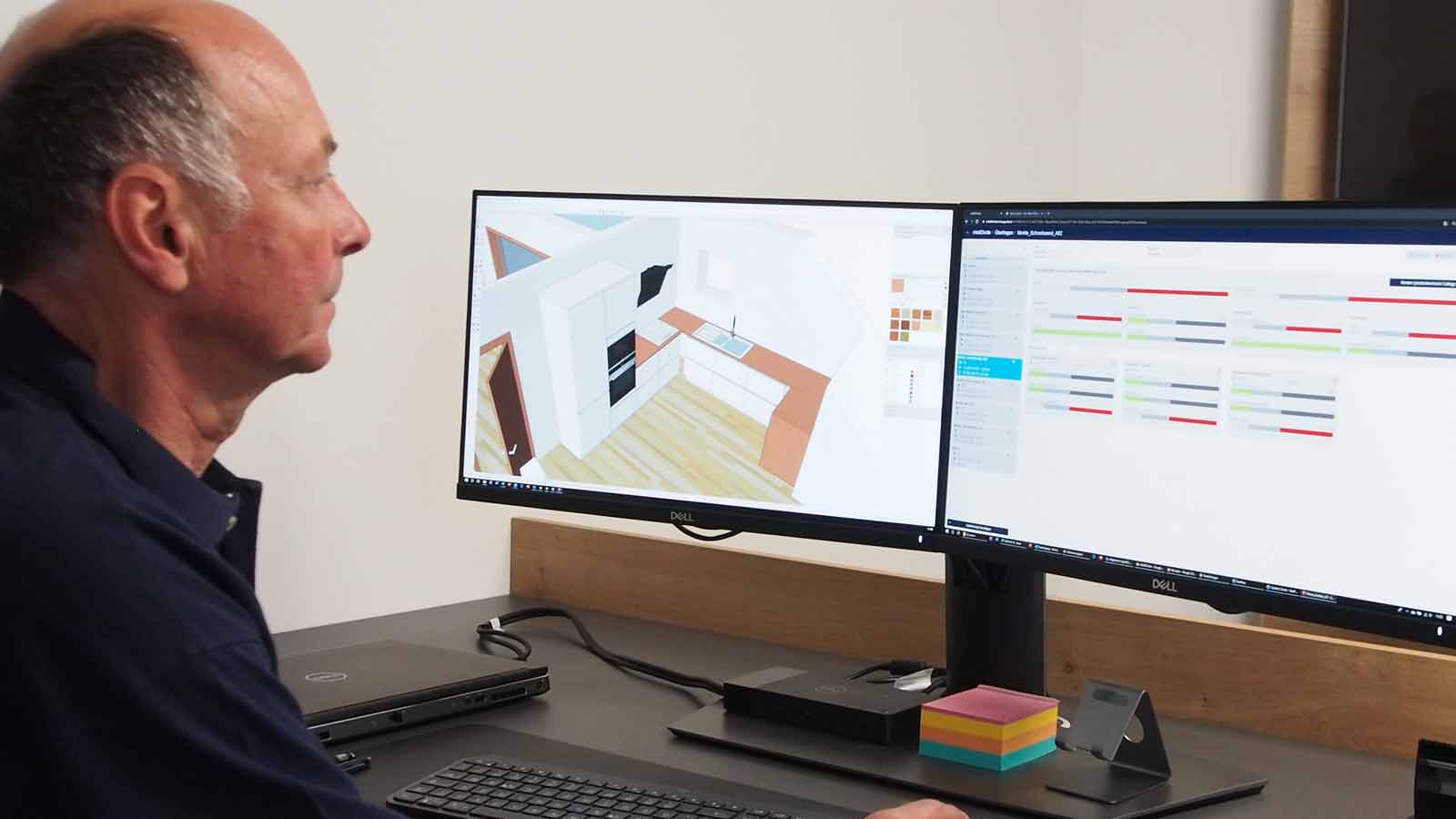 Dann sprechen wir über den Einstieg der Schreinerei in das Thema Digitalisierung. Zunächst outet sich der sympathische Schreinermeister und erzählt mir ganz offen: „Ich bin überhaupt kein PC-Freak. Aber meine Ehefrau Jutta organisiert das Büro und erstellt mit Sketchup sehr ansprechende 3D-Präsen-tationen und Entwürfe für unsere Kunden.“ Außer dieser weit verbreiteten, günstigen und dennoch leistungsstarken 3D-Designsoftware nutzte die Schreinerei bis vor kurzem aus-schließlich Standard-Office-Programme.Der bisherige Workflow gestaltete sich so: Wenn es aufgrund der Sketchup-Präsentation zum Auftrag kam, nahm Fritz Strom Block und Stift zur Hand und erstellte die Materialliste. Vollkommen manuell. Die Bestellung des Plattenmaterials erfolgte dann nach Bauch -gefühl. Fritz Strom: „Da hat man auch schnell mal eine Platte zuviel bestellt.“ Das sagt er schmunzelnd, denn heute passiert ihm das nicht mehr. Das gleiche gilt für den Platten -zuschnitt, der auf einer Formatkreissäge sowie einer älteren liegenden Plattensäge durch geführt wird: Früher nach Bauchgefühl, heute mit System.